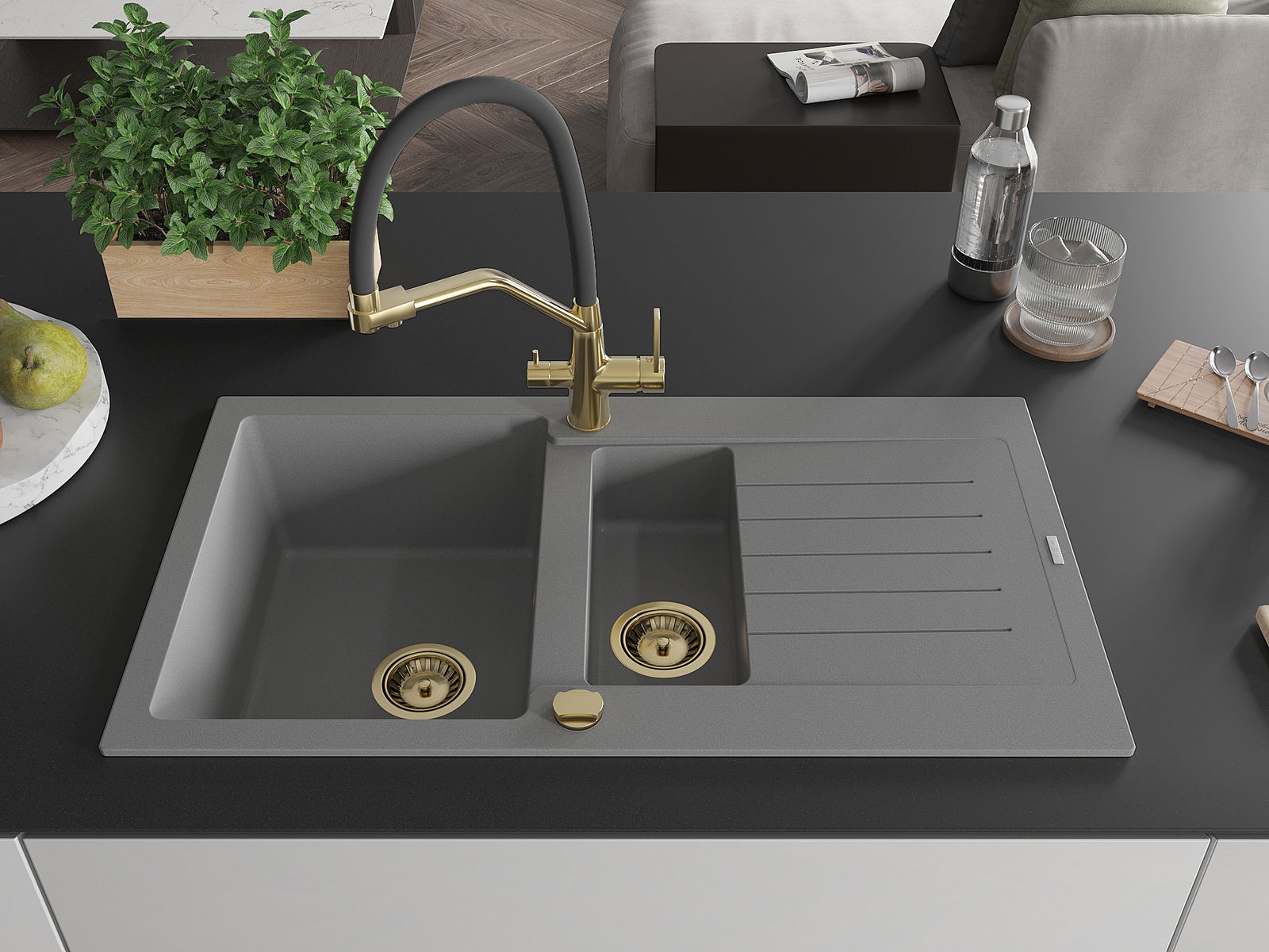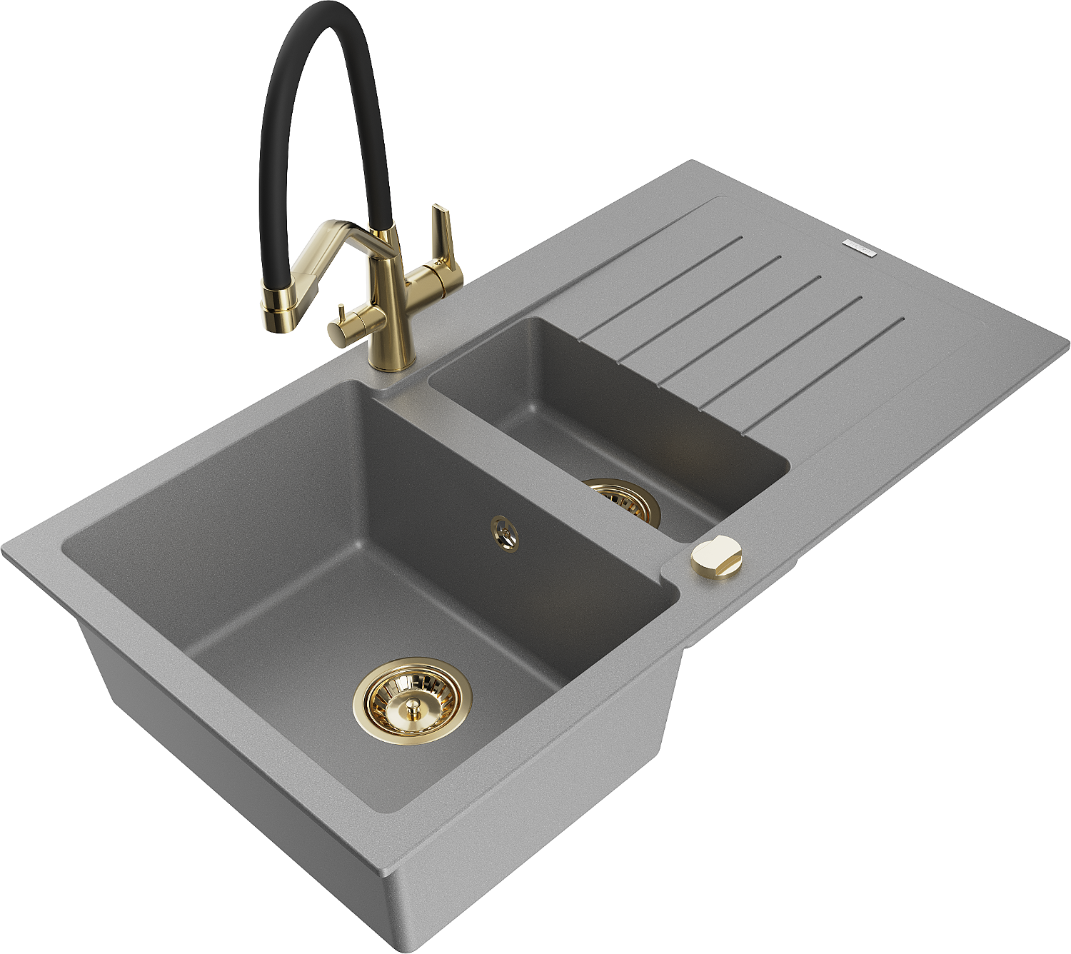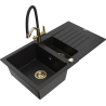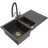 Mexen Matias žulový drez 1,5-komorový s odkvapkávačom a kuchynská batéria Duo, sivý - 6502-71-671701-57-G
