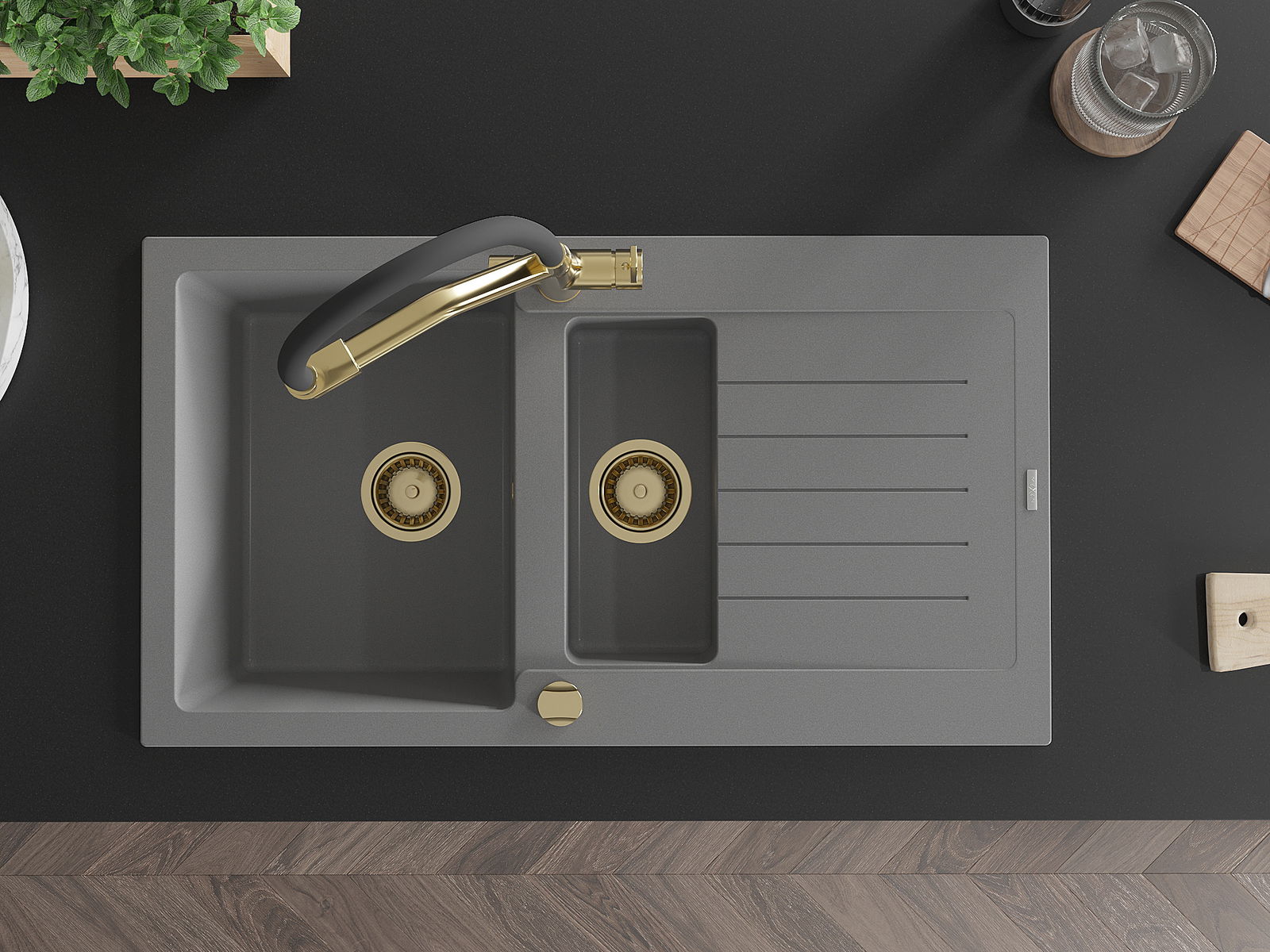 Povrch umývadla je odolný voči škvrnám a sfarbeniu, vďaka čomu sa ľahko čistí a zachováva si svoju farbu po dlhú dobu. Estetický a prakticky dopĺňajúci každú kuchyňu.