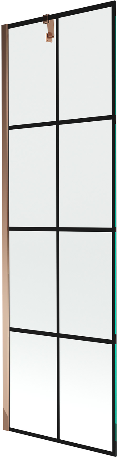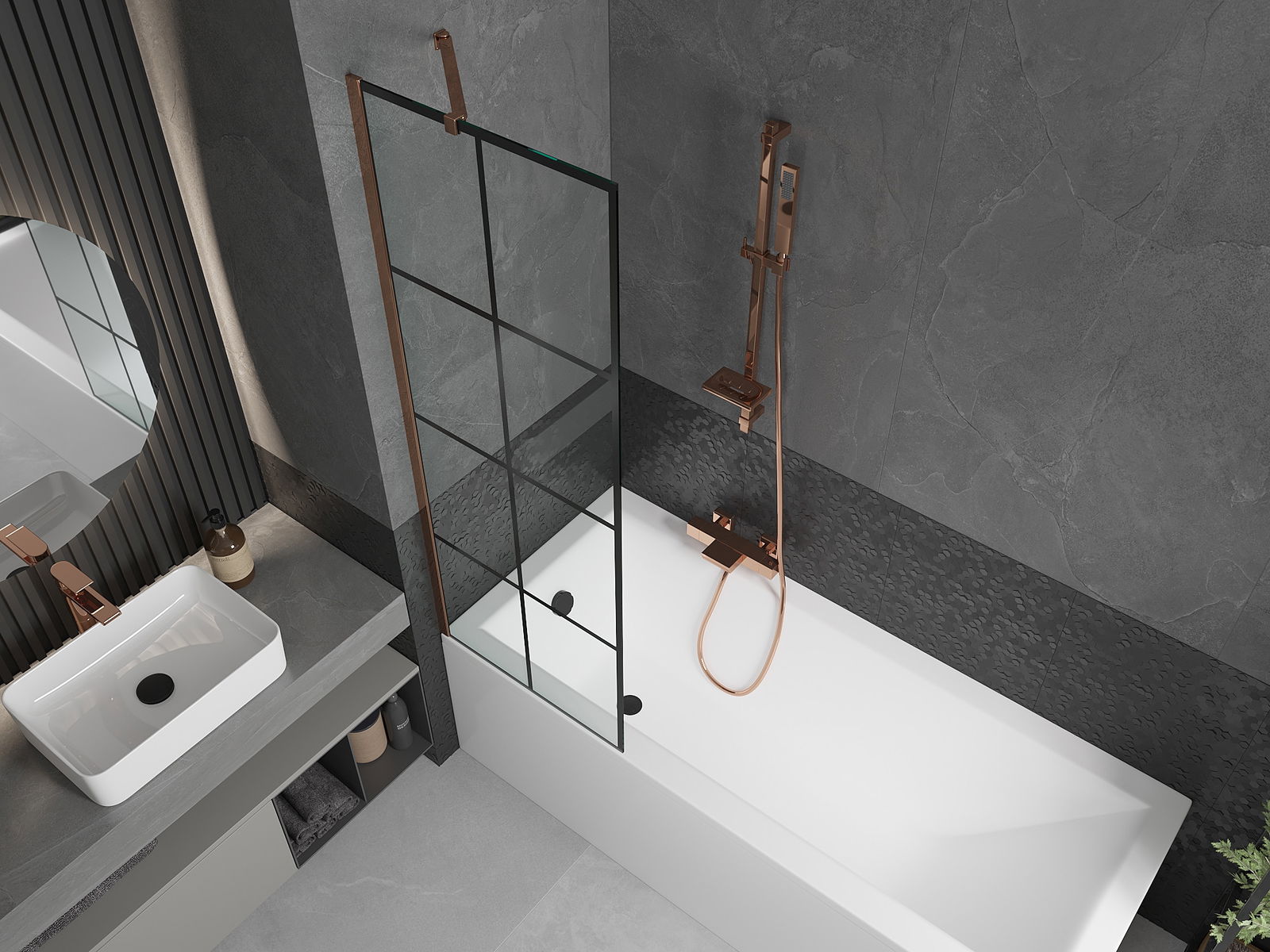 Mexen Next vaňová zástena jednokrídlová 60 x 150 cm, čierna mriežka, ružové zlato - 895-060-000-00-77-60