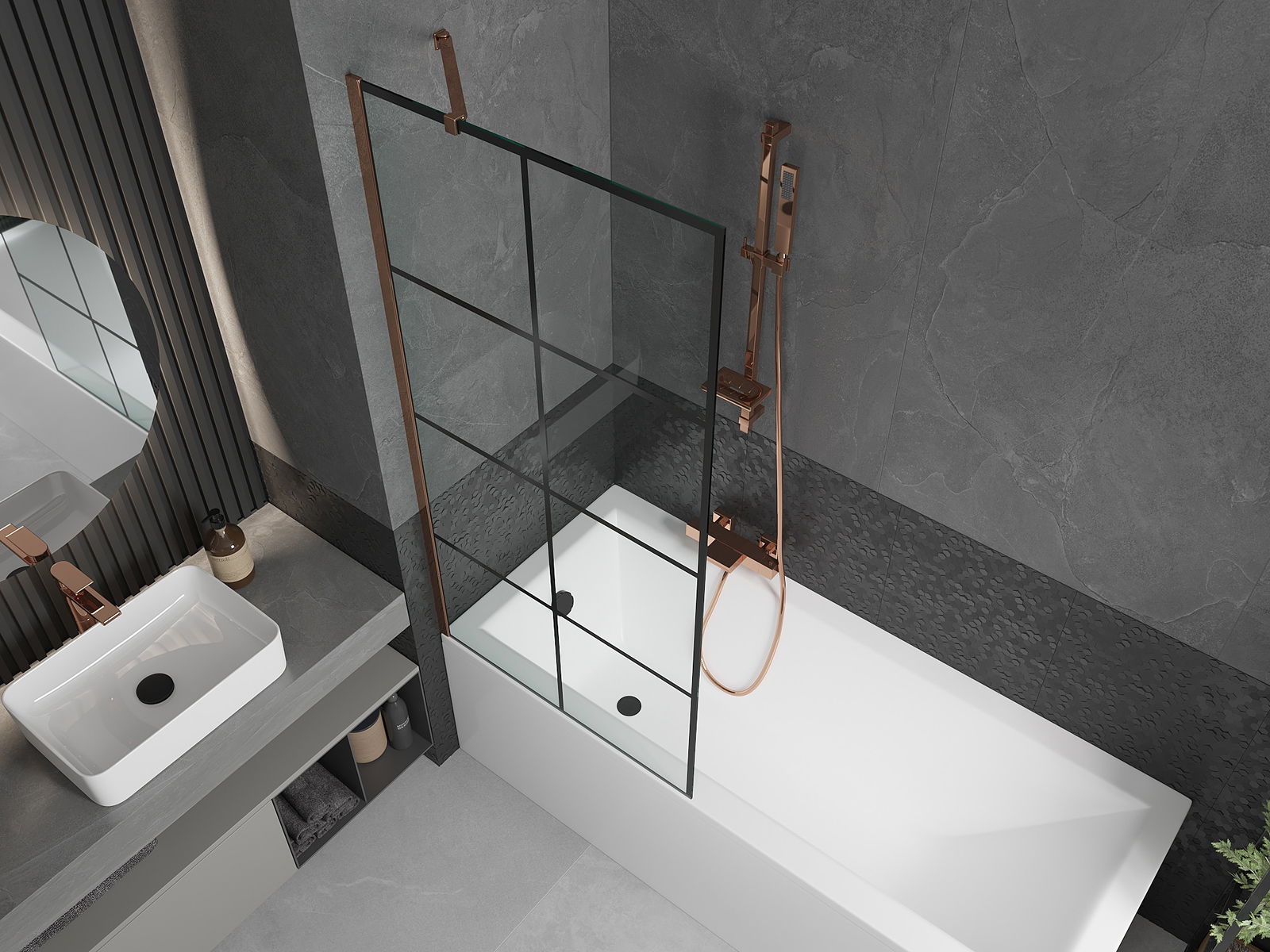 Mexen Next jednokrídlový sprchový paraván 80 x 150 cm, čierna mriežka, ružové zlato - 895-080-000-00-77-60