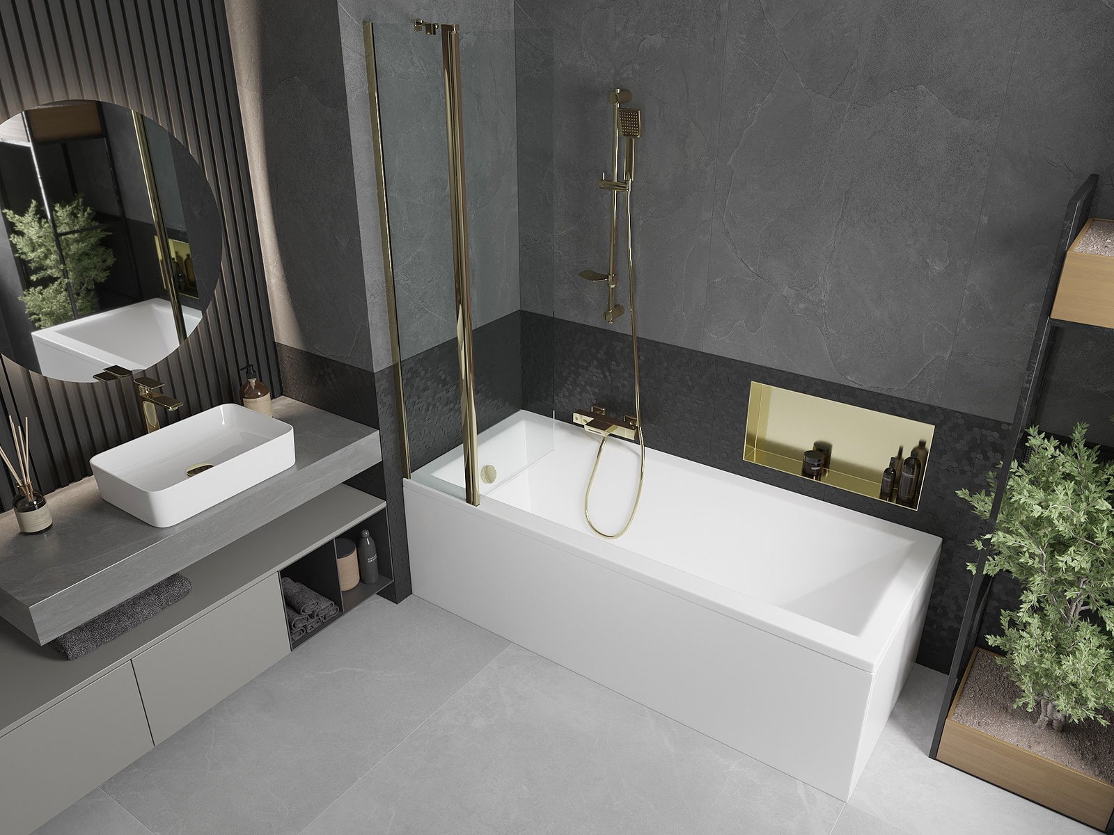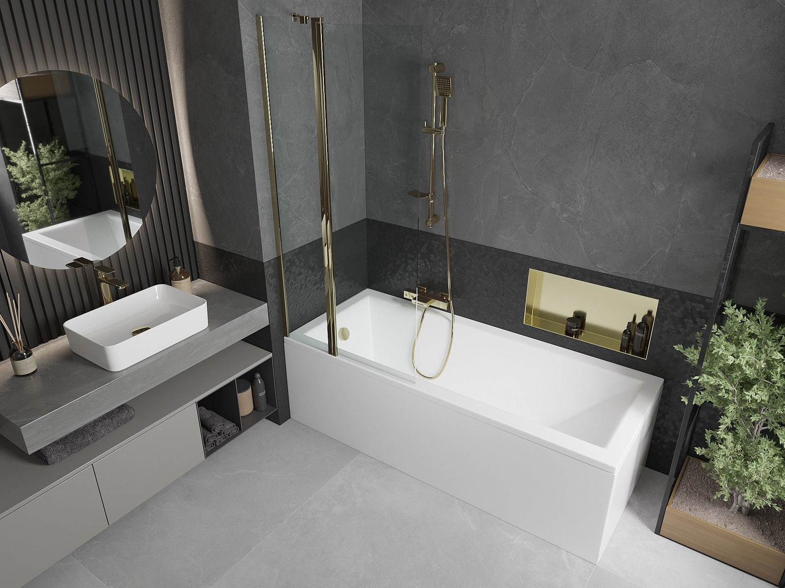 Obrazovka má jedno pohybujúce sa krídlo s možnosťou skladania. Toto riešenie šetrí viac priestoru v kúpeľni a umožňuje vám voľne využívať zvyšný priestor, keď nepoužívame kúpaciu oblasť.