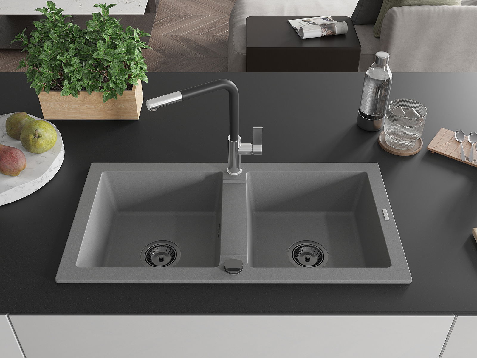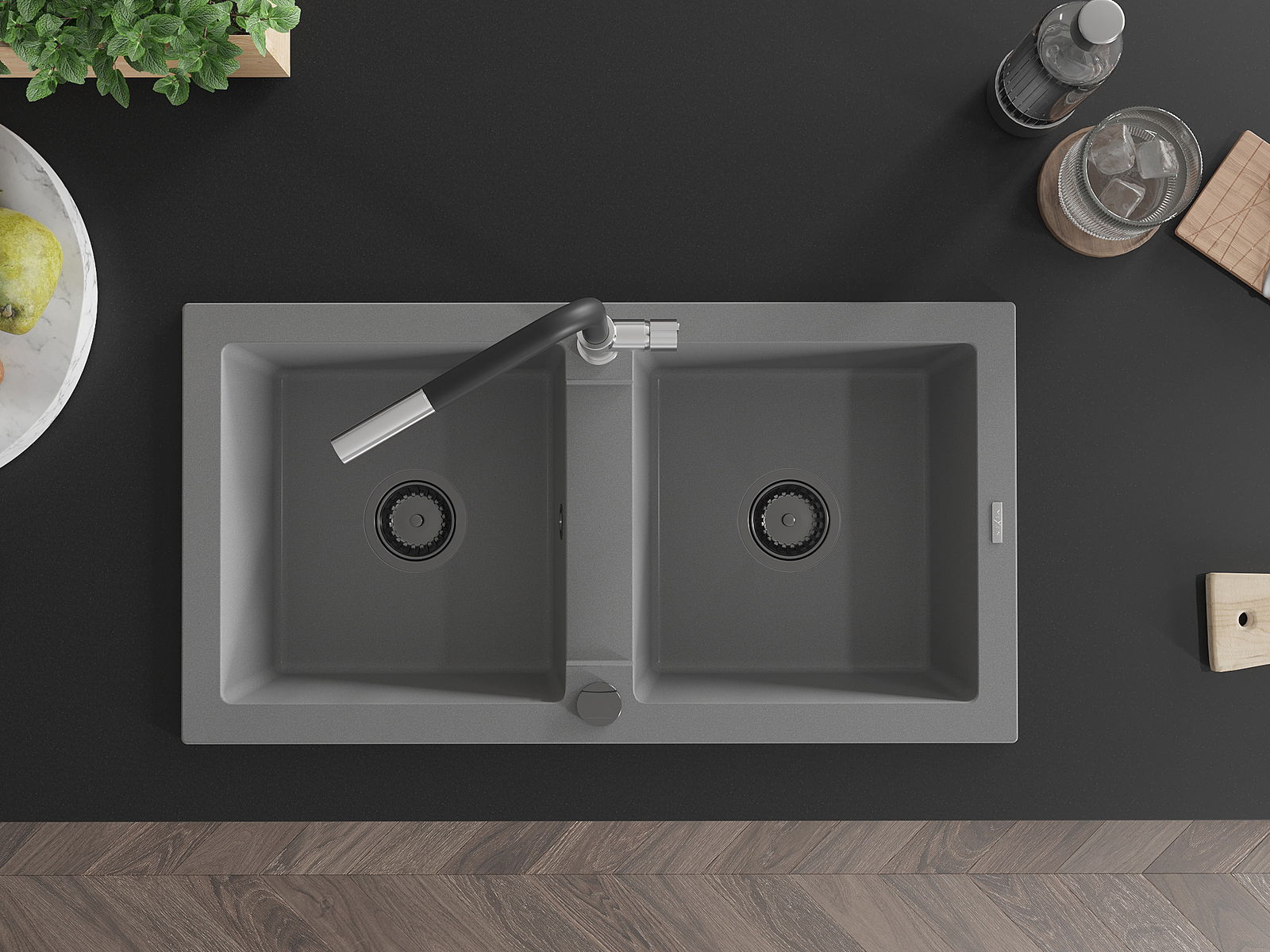 Povrch umývadla je odolný voči škvrnám a sfarbeniu, vďaka čomu sa ľahko čistí a zachováva si svoju farbu po dlhú dobu. Estetický a prakticky dopĺňajúci každú kuchyňu.