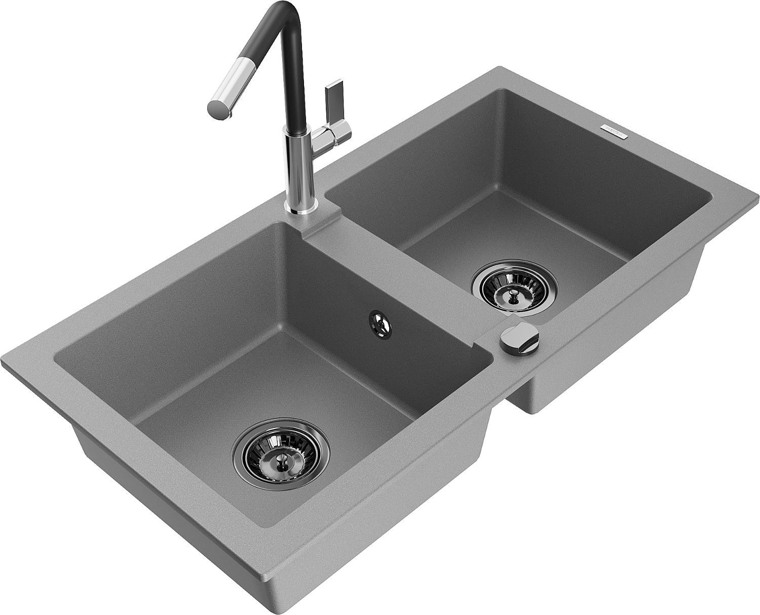 Mexen Mario žulový kuchynský drez s dvoma komorami a kuchynskou batériou Flora, sivý - 6504-71-670401-07-B