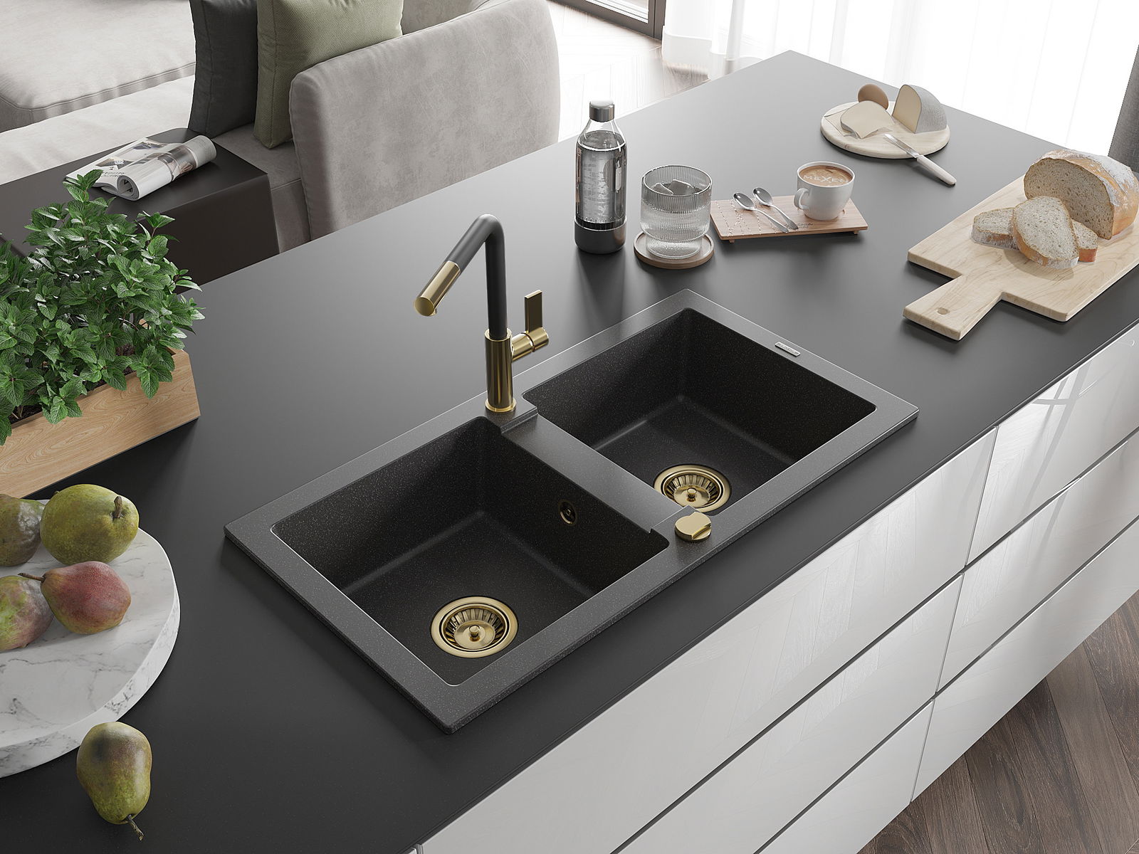 Povrch umývadla je odolný voči škvrnám a sfarbeniu, vďaka čomu sa ľahko čistí a zachováva si svoju farbu po dlhú dobu. Estetický a prakticky dopĺňajúci každú kuchyňu.