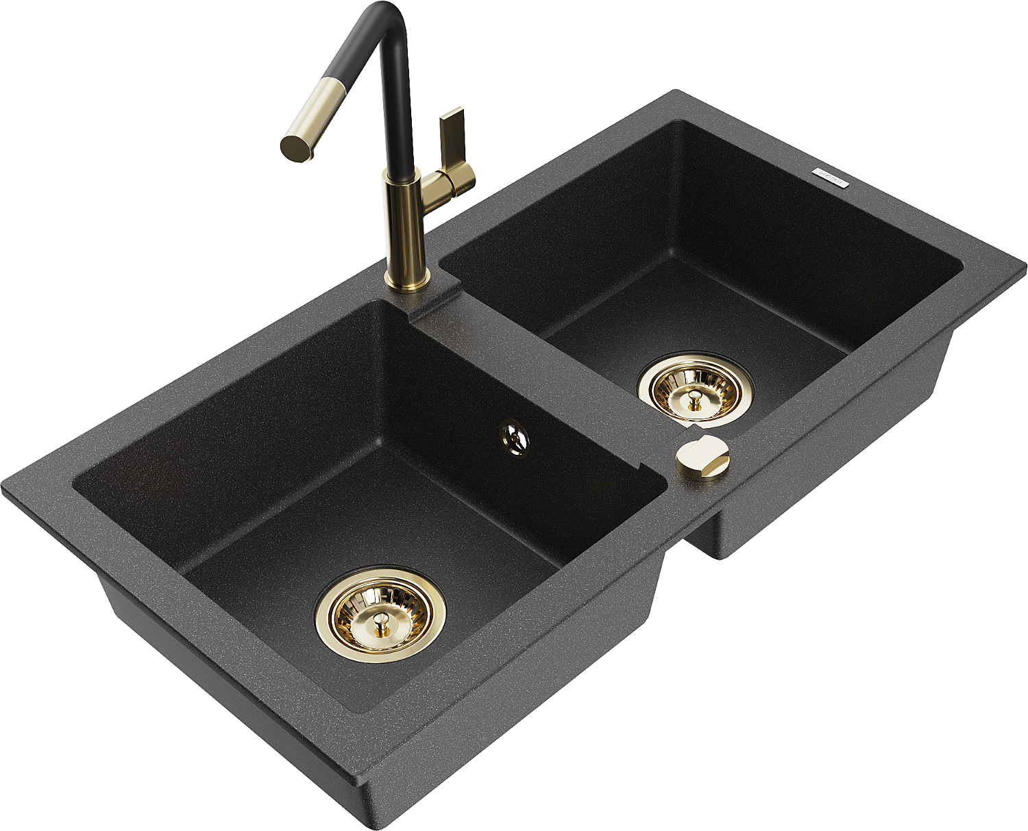 Mexen Mario žulový dvojkomorový kuchynský drez s batériou Flora, čierny škvrnitý - 6504-76-670401-57-G