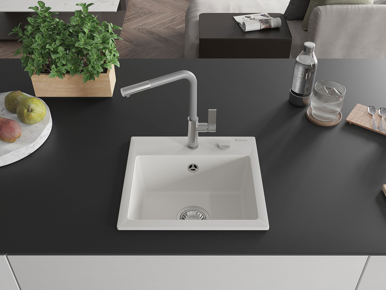 Povrch umývadla je odolný voči škvrnám a sfarbeniu, vďaka čomu sa ľahko čistí a zachováva si svoju farbu po dlhú dobu. Estetický a prakticky dopĺňajúci každú kuchyňu.