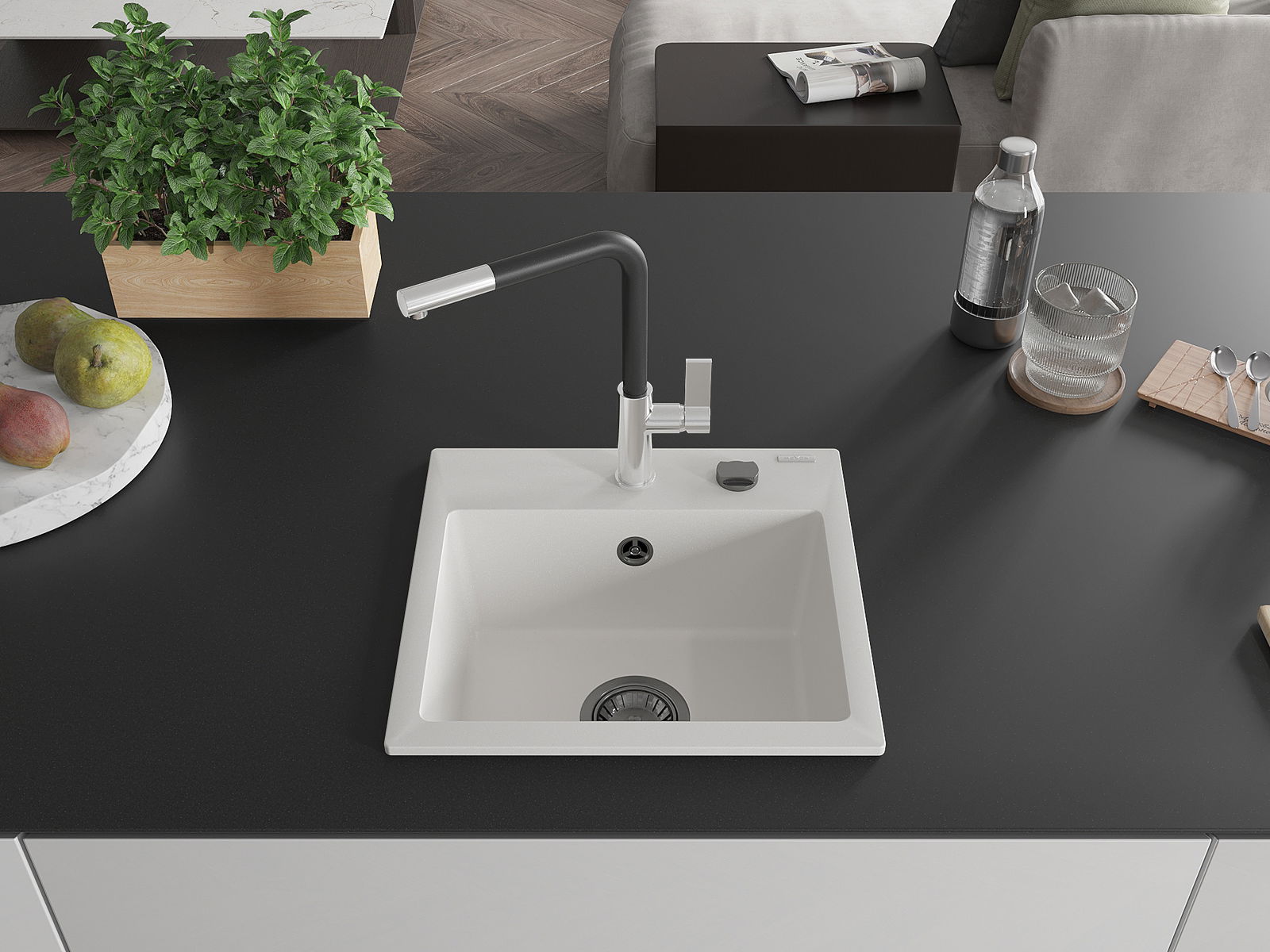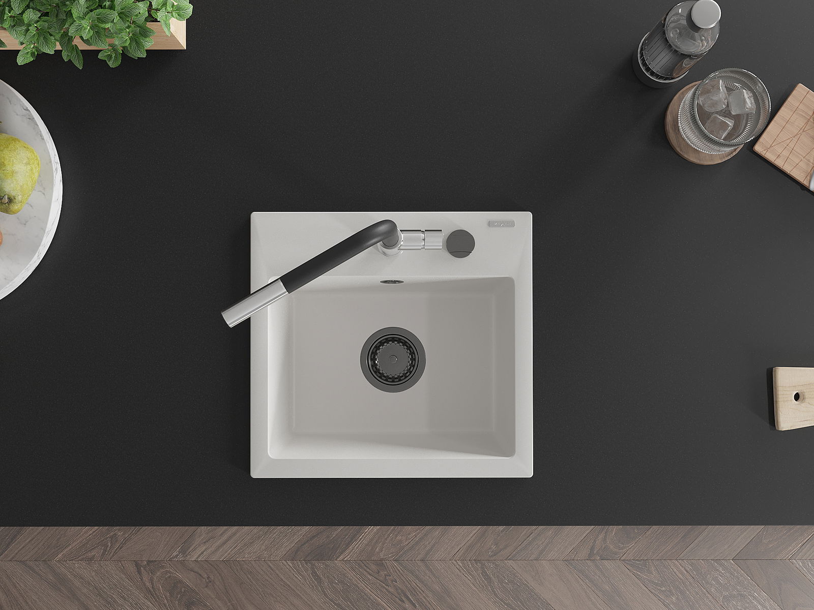 Povrch umývadla je odolný voči škvrnám a sfarbeniu, vďaka čomu sa ľahko čistí a zachováva si svoju farbu po dlhú dobu. Estetický a prakticky dopĺňajúci každú kuchyňu.