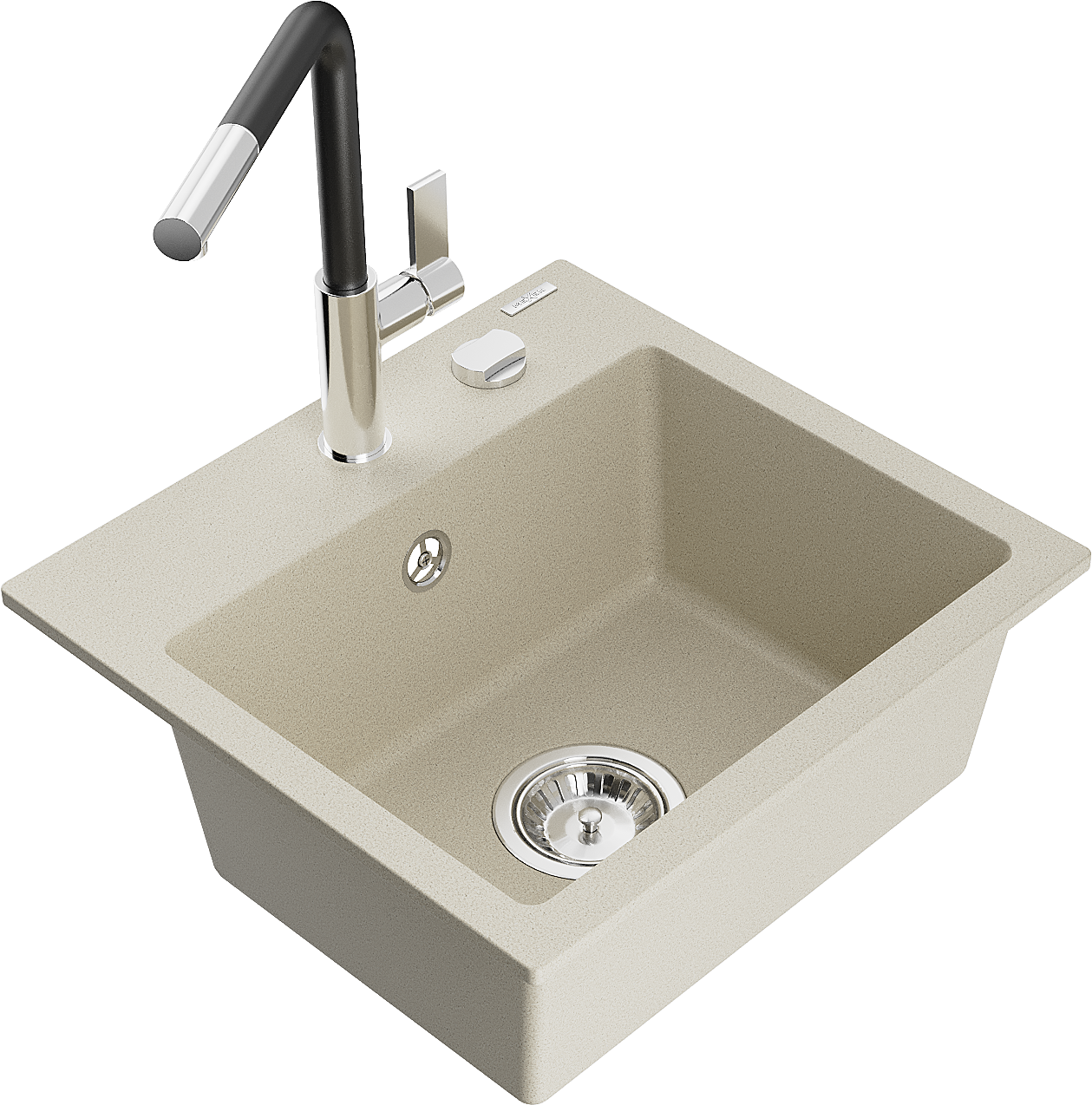 Mexen Milo žulový jednodrezový drez s kuchynskou batériou Flora, béžový - 6505-69-670401-07