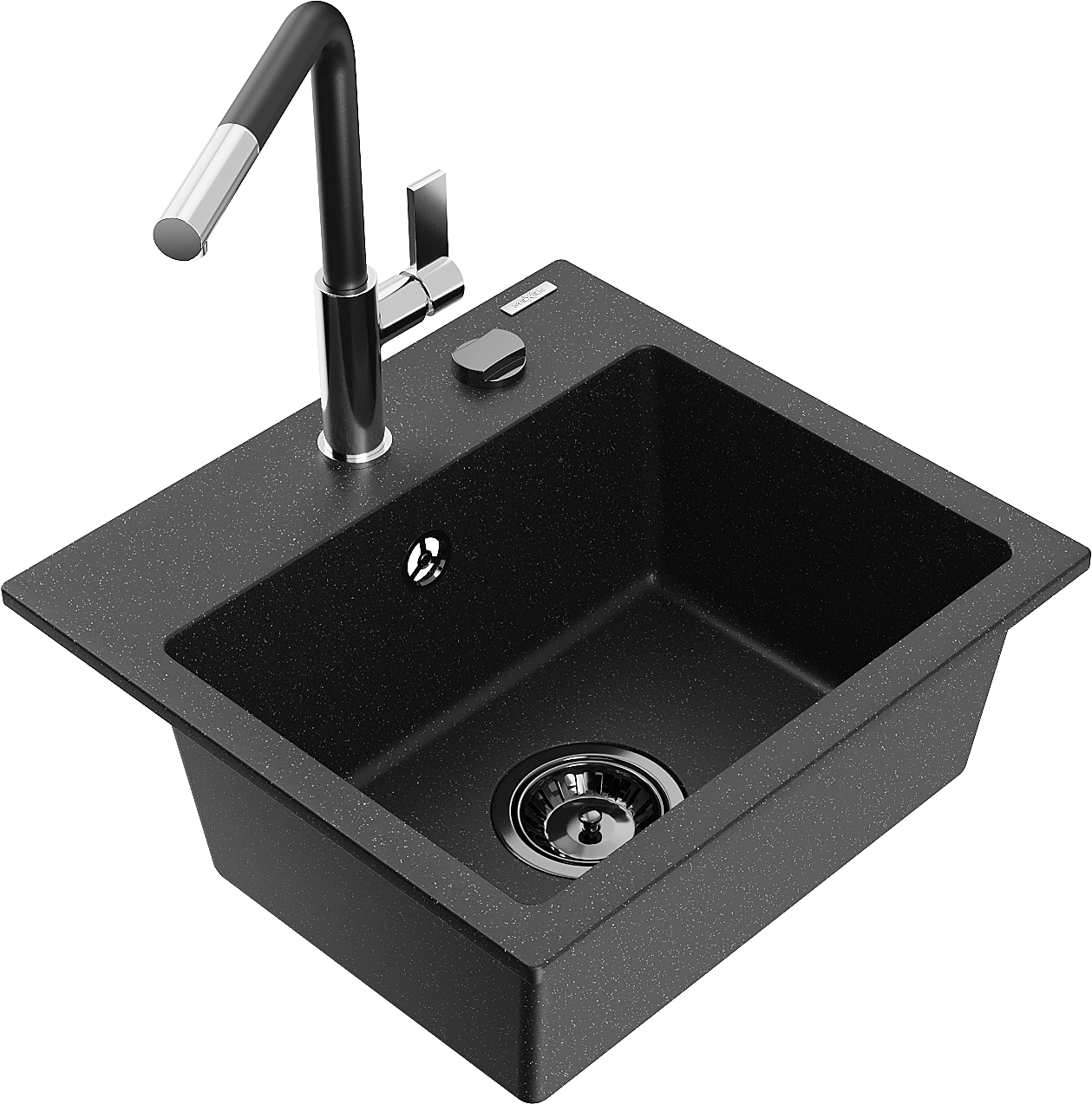 Mexen Milo žulový kuchynský drez 1-komorový s kuchynskou batériou Flora, čierny/strieborný metalík - 6505-73-670401-07-B