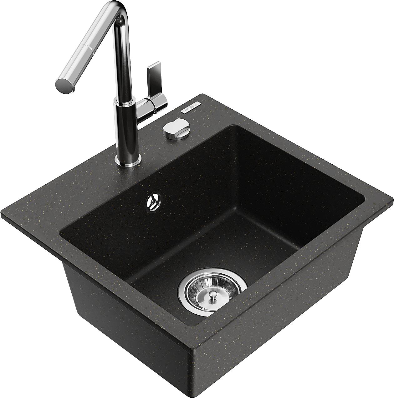 Mexen Milo granitový kuchynský drez s 1 komorou a kuchynskou batériou Flora, čierna/zlatý metalický - 6505-75-670401-00