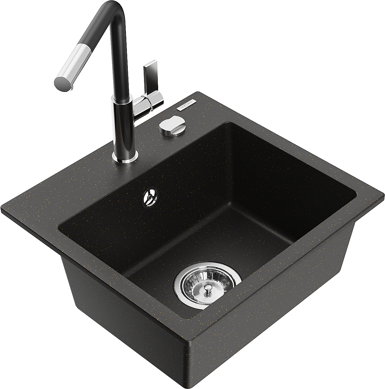 Mexen Milo granitový kuchynský drez s 1 komorou a kuchynskou batériou Flora, čierny/zlatý metalický - 6505-75-670401-07