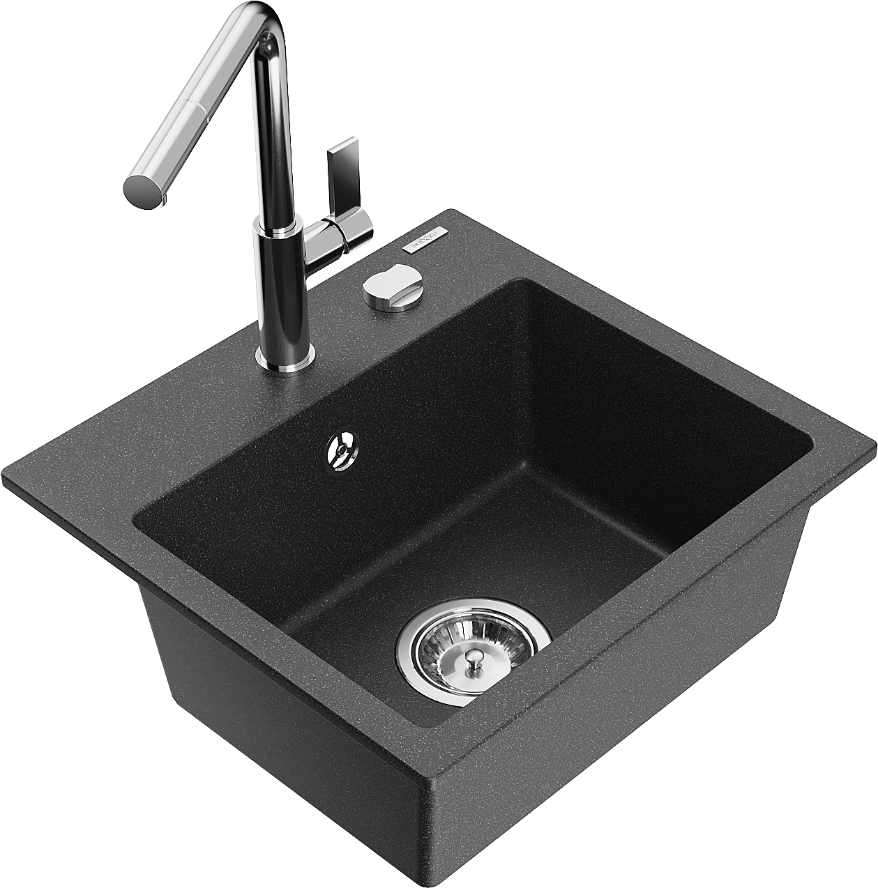 Mexen Milo granitový drez 1-komorový s kuchynskou batériou Flora, čierny škvrnitý - 6505-76-670401-00