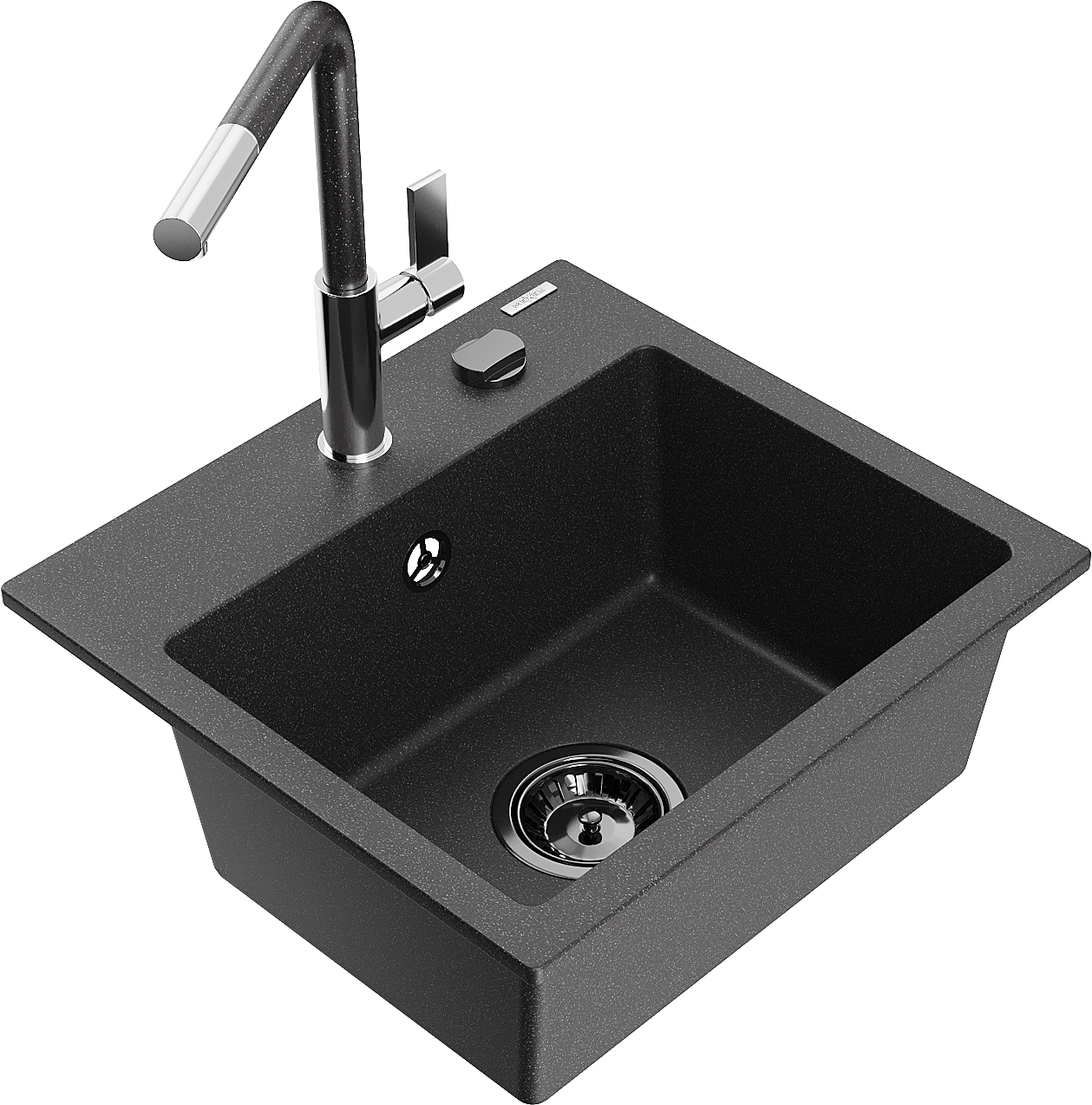 Mexen Milo granitový drez 1-komorový s kuchynskou batériou Flora, čierny škvrnitý - 6505-76-670401-08-B