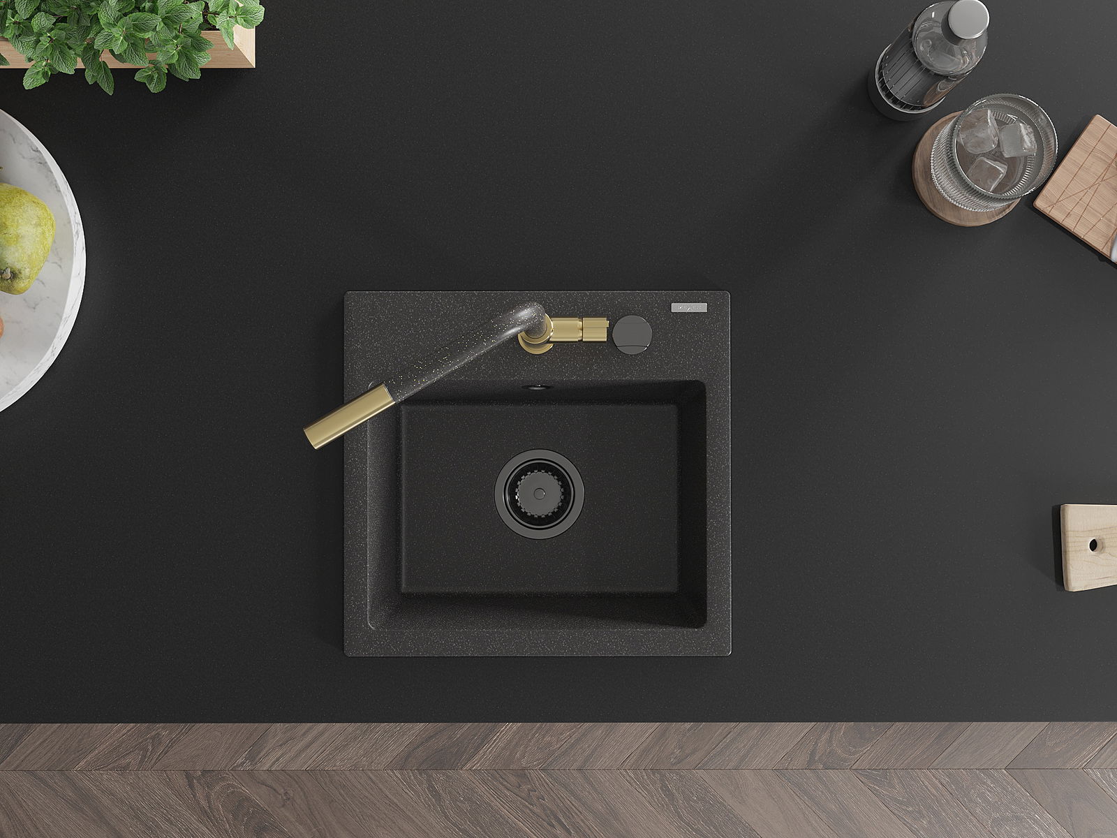 Mexen Milo granitový drez 1-komorový s kuchynskou batériou Flora, čierny bodkovaný - 6505-76-670401-75-B