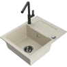 Povrch kuchynského drezu je odolný voči škvrnám a zafarbeniu, vďaka čomu sa ľahko udržiava a zachováva svoju farbu počas dlhého obdobia používania. Estetický a praktický doplnok pre každú kuchyňu.