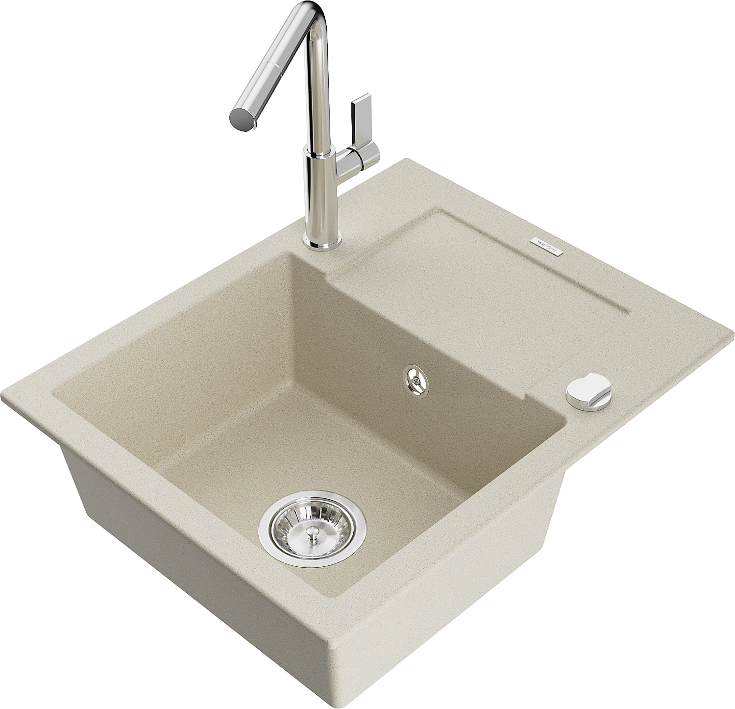 Mexen Enzo granitový drez 1-komorový s odkvapkávačom a kuchynskou batériou Flora, béžový - 6506-69-670401-00