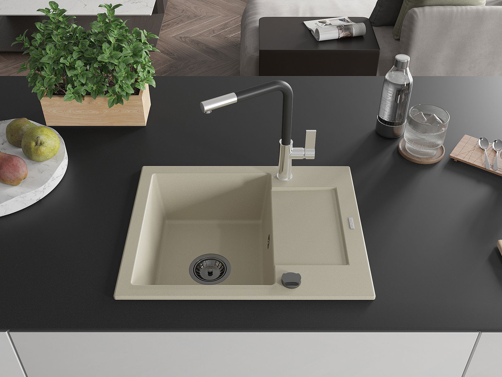 Povrch umývadla je odolný voči škvrnám a sfarbeniu, vďaka čomu sa ľahko čistí a zachováva si svoju farbu po dlhú dobu. Estetický a prakticky dopĺňajúci každú kuchyňu.