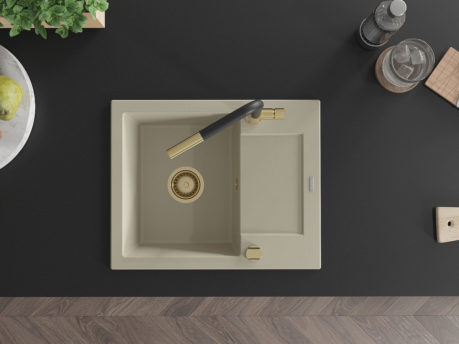 Povrch umývadla je odolný voči škvrnám a sfarbeniu, vďaka čomu sa ľahko čistí a zachováva si svoju farbu po dlhú dobu. Estetický a prakticky dopĺňajúci každú kuchyňu.