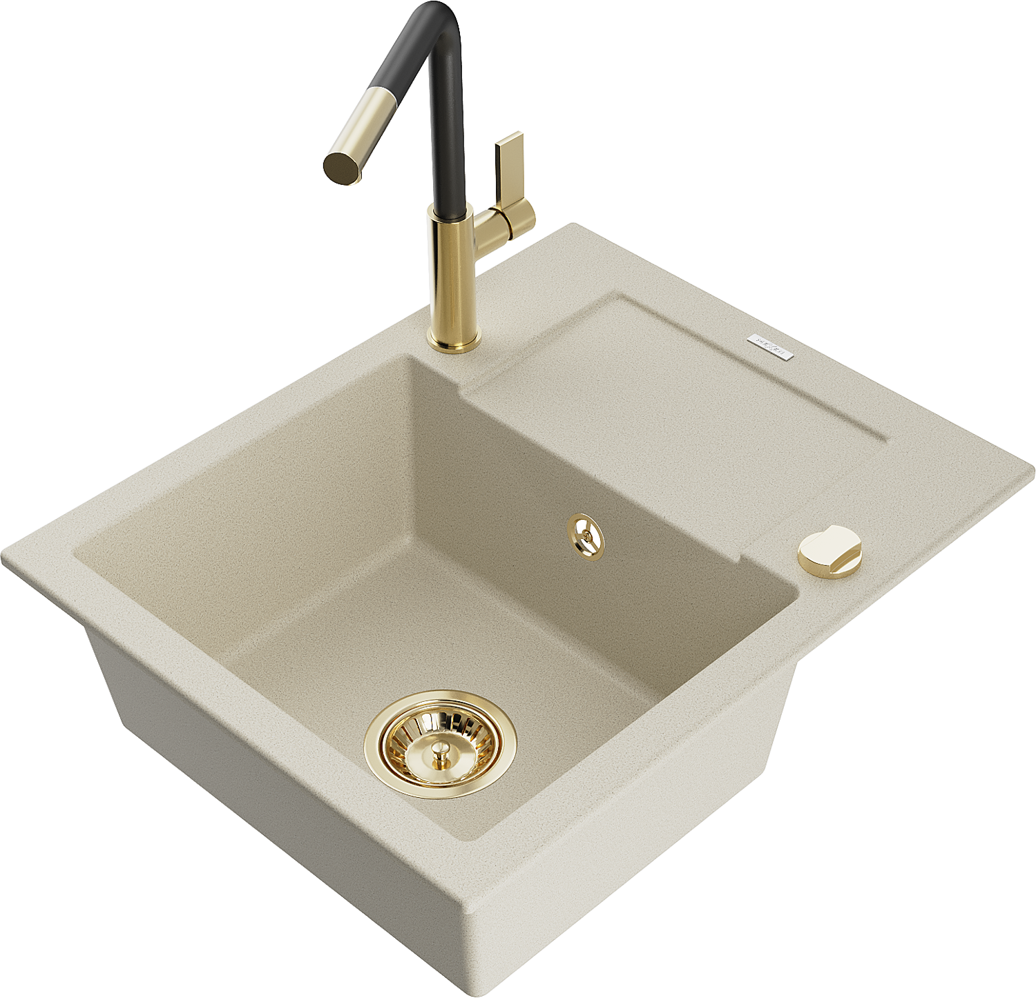Mexen Enzo granitový drez s 1 komorou, odkvapkávačom a kuchynskou batériou Flora, béžový - 6506-69-670401-57-G