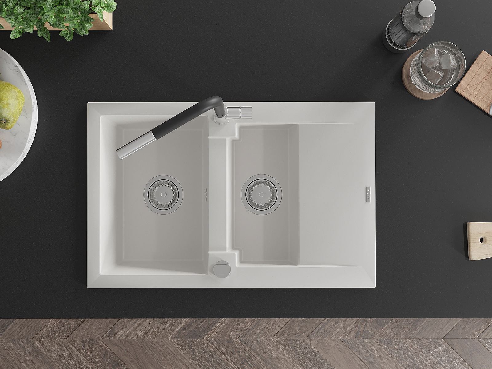 Povrch umývadla je odolný voči škvrnám a sfarbeniu, vďaka čomu sa ľahko čistí a zachováva si svoju farbu po dlhú dobu. Estetický a prakticky dopĺňajúci každú kuchyňu.