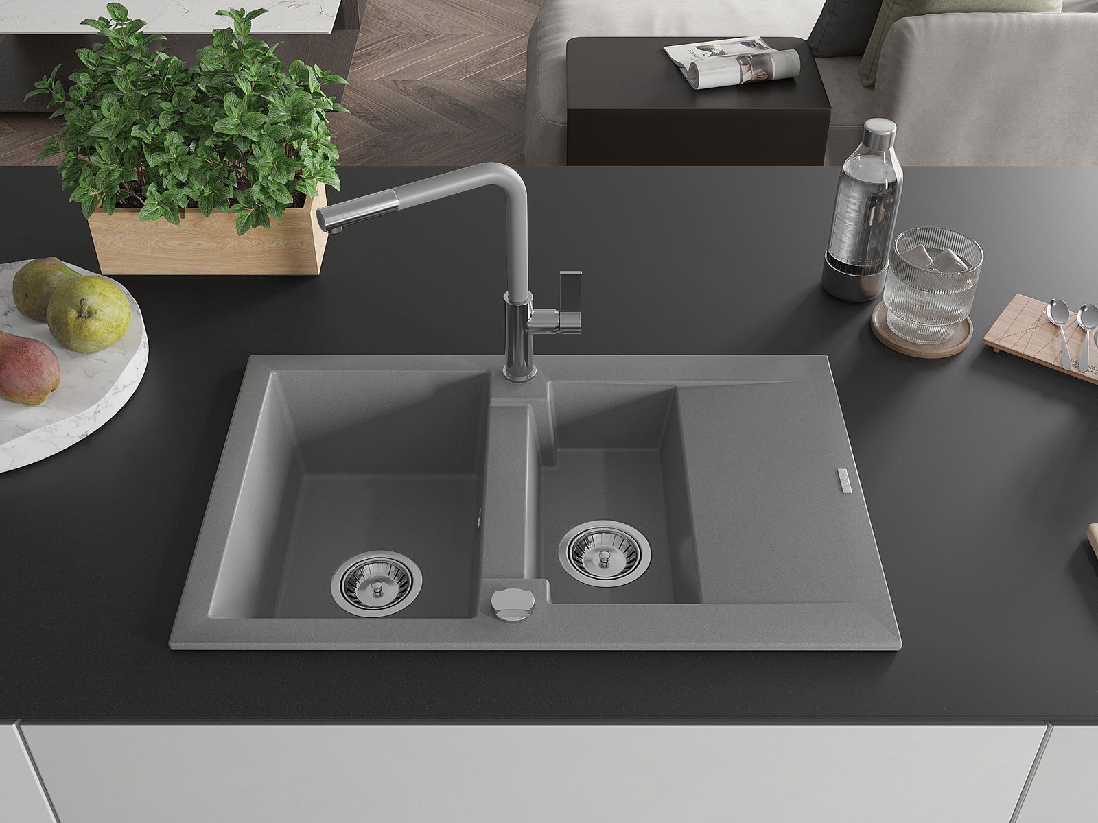 Povrch umývadla je odolný voči škvrnám a sfarbeniu, vďaka čomu sa ľahko čistí a zachováva si svoju farbu po dlhú dobu. Estetický a prakticky dopĺňajúci každú kuchyňu.