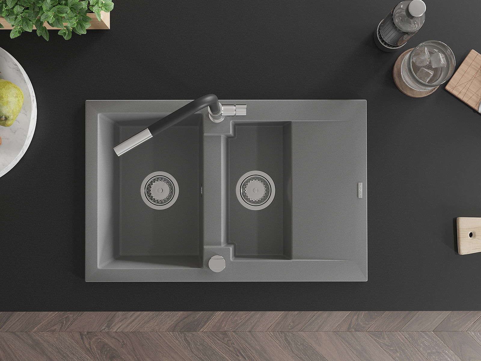 Povrch umývadla je odolný voči škvrnám a sfarbeniu, vďaka čomu sa ľahko čistí a zachováva si svoju farbu po dlhú dobu. Estetický a prakticky dopĺňajúci každú kuchyňu.