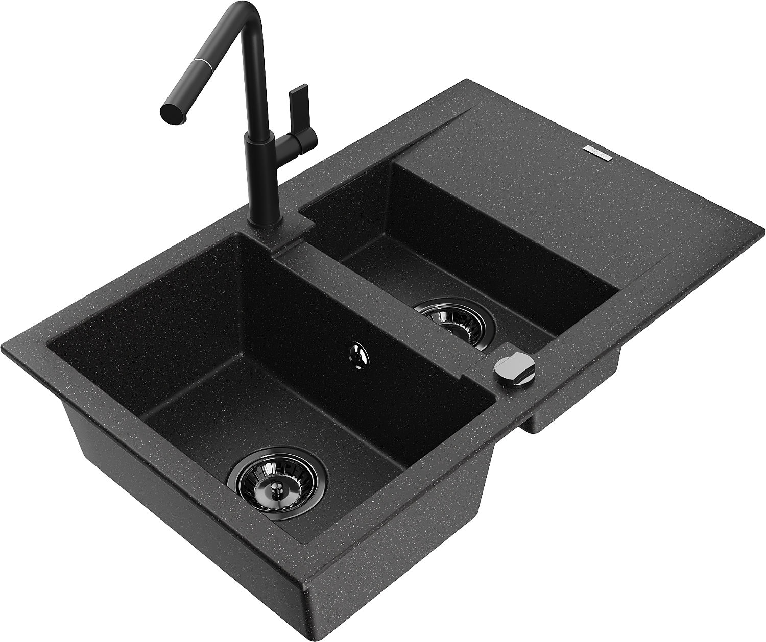 Mexen Gaspar granitový drez 1,5-komorový s odkvapkávačom a kuchynskou batériou Flora, čierny/strieborný
