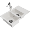 Povrch kuchynského drezu je odolný voči škvrnám a zafarbeniu, vďaka čomu sa ľahko udržiava a zachováva svoju farbu počas dlhého obdobia používania. Estetický a praktický doplnok pre každú kuchyňu.