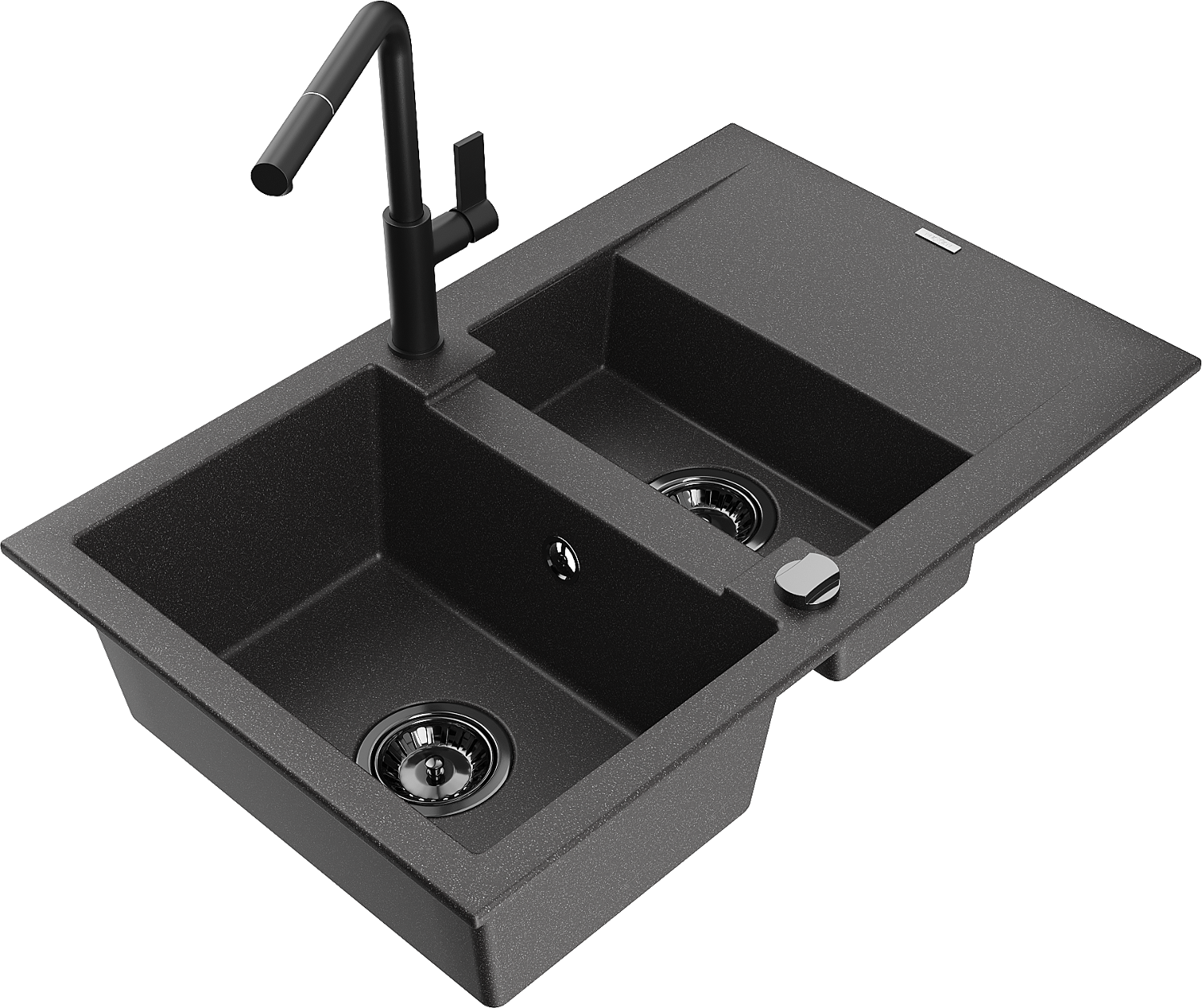 Mexen Gaspar žulový drez s 1,5 komorou s odkvapkávačom a kuchynskou batériou Flora, čierny bodkovaný - 6507-76-670401-70-B