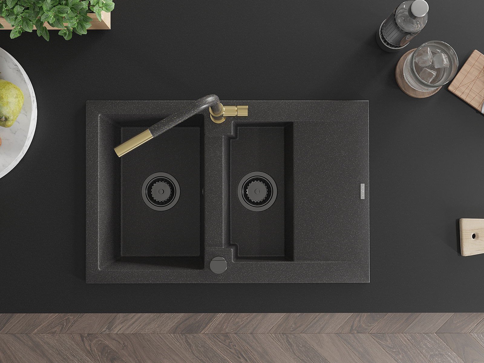 Povrch umývadla je odolný voči škvrnám a sfarbeniu, vďaka čomu sa ľahko čistí a zachováva si svoju farbu po dlhú dobu. Estetický a prakticky dopĺňajúci každú kuchyňu.