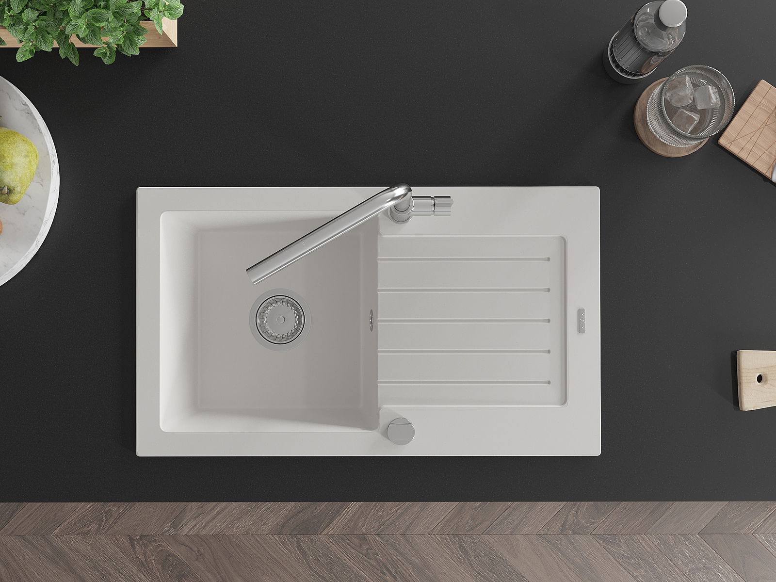 Povrch umývadla je odolný voči škvrnám a sfarbeniu, vďaka čomu sa ľahko čistí a zachováva si svoju farbu po dlhú dobu. Estetický a prakticky dopĺňajúci každú kuchyňu.