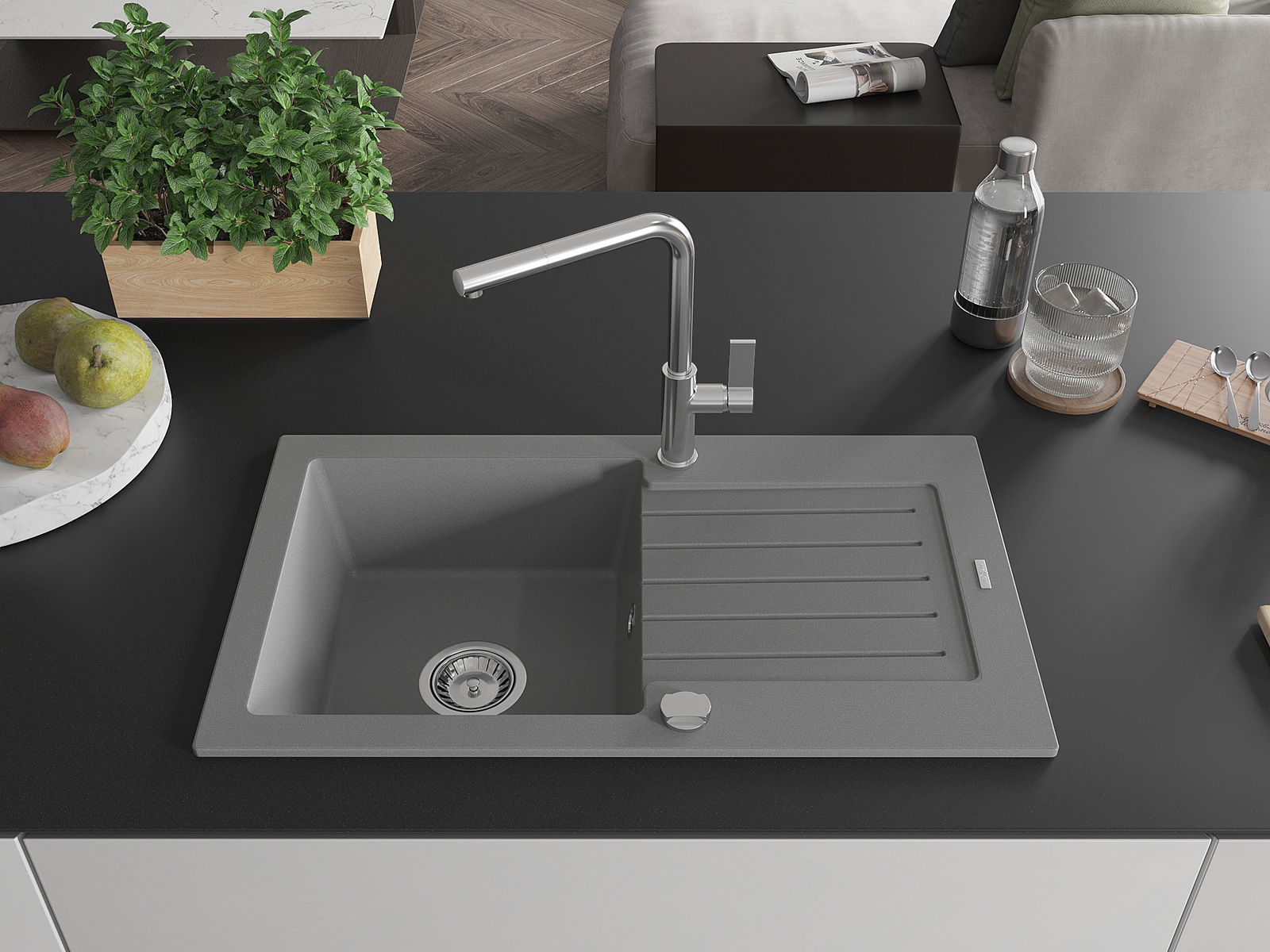 Povrch umývadla je odolný voči škvrnám a sfarbeniu, vďaka čomu sa ľahko čistí a zachováva si svoju farbu po dlhú dobu. Estetický a prakticky dopĺňajúci každú kuchyňu.