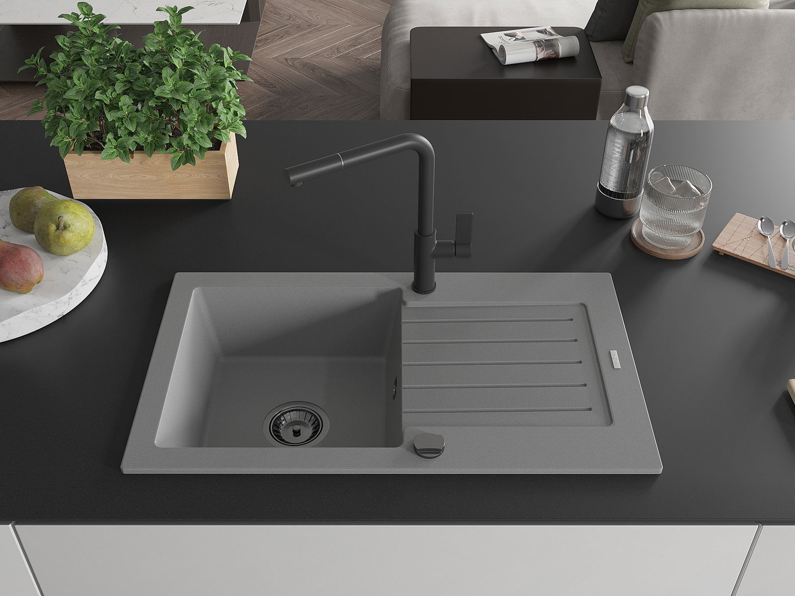 Povrch umývadla je odolný voči škvrnám a sfarbeniu, vďaka čomu sa ľahko čistí a zachováva si svoju farbu po dlhú dobu. Estetický a prakticky dopĺňajúci každú kuchyňu.