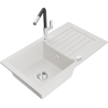 Povrch kuchynského drezu je odolný voči škvrnám a zafarbeniu, vďaka čomu sa ľahko udržiava a zachováva svoju farbu počas dlhého obdobia používania. Estetický a praktický doplnok pre každú kuchyňu.
