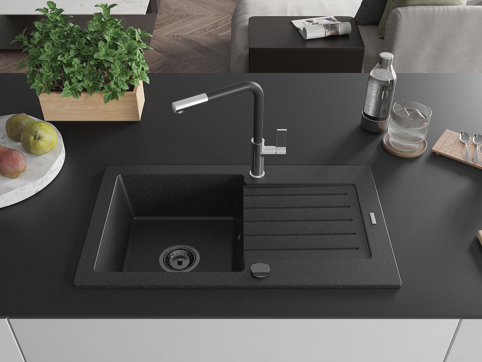 Drez bol vyrobený z vysoko kvalitného granitu. Predstavuje elegantné, ale predovšetkým praktické doplnenie každej kuchyne, nezávisle od jej štýlu. Vysoká kvalita a trvácnosť granitu zaisťujú dlhodobé používanie.