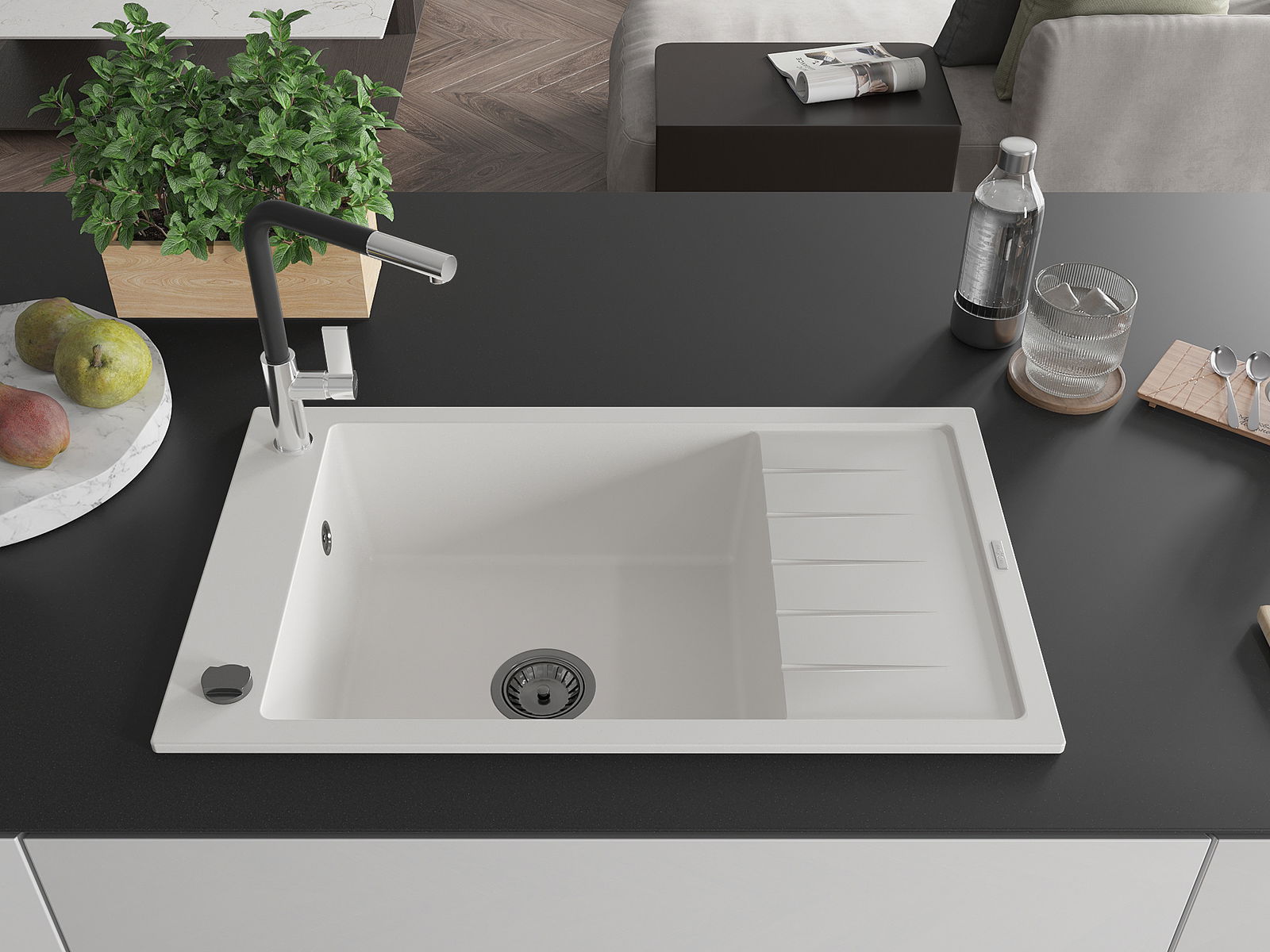 Povrch umývadla je odolný voči škvrnám a sfarbeniu, vďaka čomu sa ľahko čistí a zachováva si svoju farbu po dlhú dobu. Estetický a prakticky dopĺňajúci každú kuchyňu.