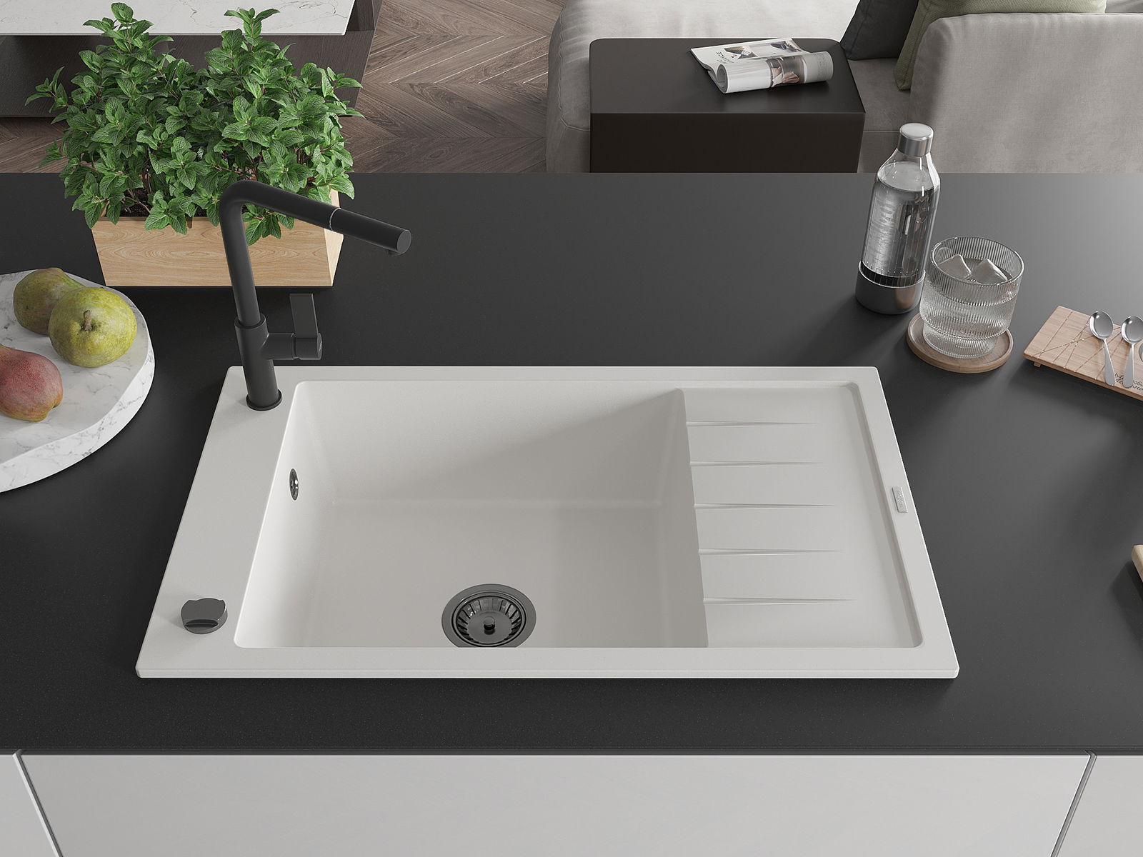 Povrch umývadla je odolný voči škvrnám a sfarbeniu, vďaka čomu sa ľahko čistí a zachováva si svoju farbu po dlhú dobu. Estetický a prakticky dopĺňajúci každú kuchyňu.