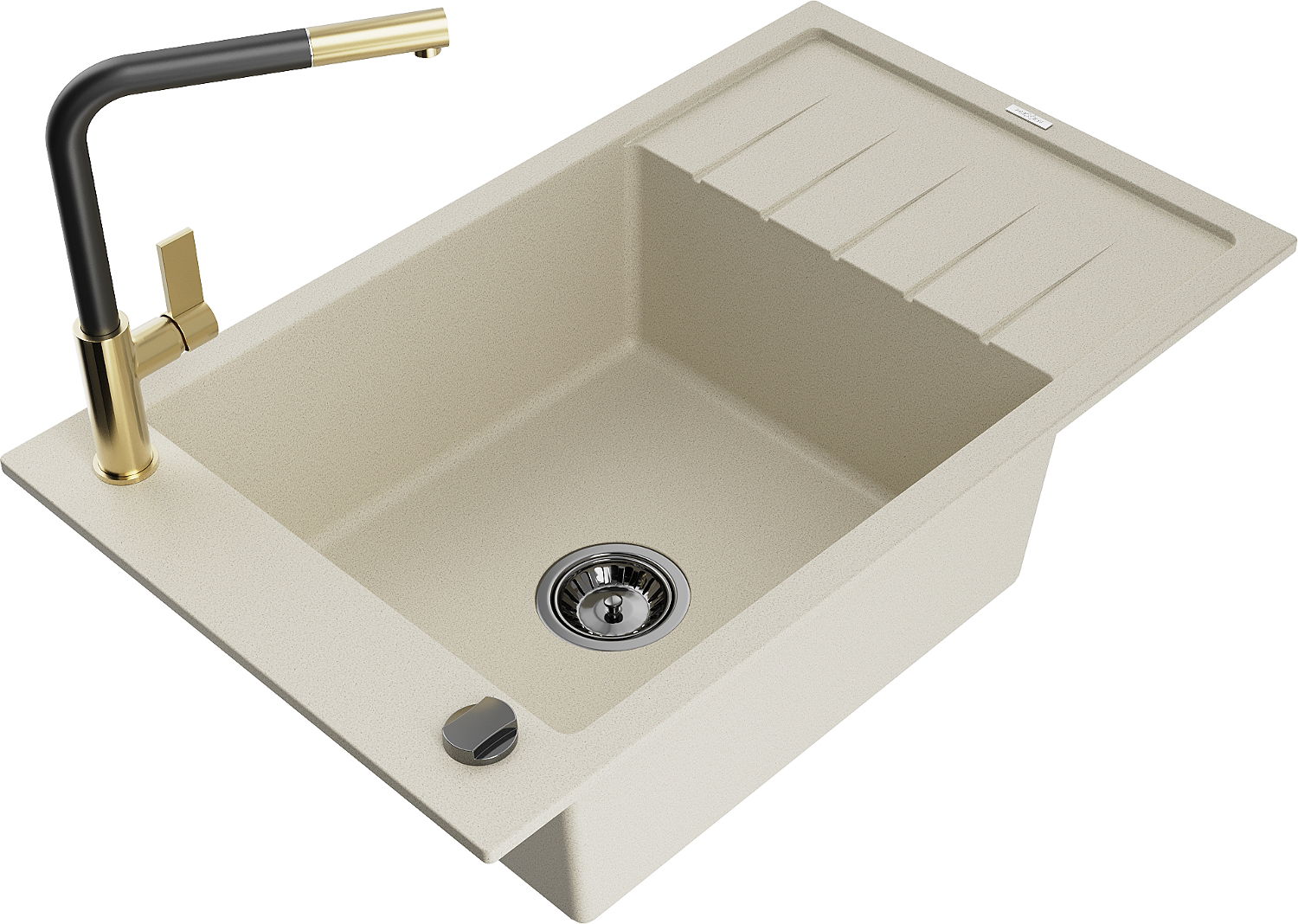 Mexen Elias žulový kuchynský drez s 1 komorou s odkvapkávačom a batériou Flora, béžový - 6511-69-670401-57-B