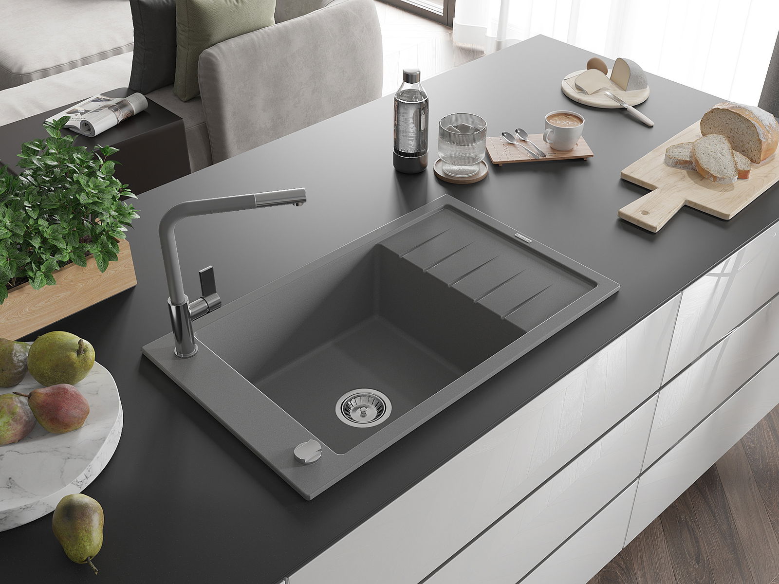 Povrch umývadla je odolný voči škvrnám a sfarbeniu, vďaka čomu sa ľahko čistí a zachováva si svoju farbu po dlhú dobu. Estetický a prakticky dopĺňajúci každú kuchyňu.