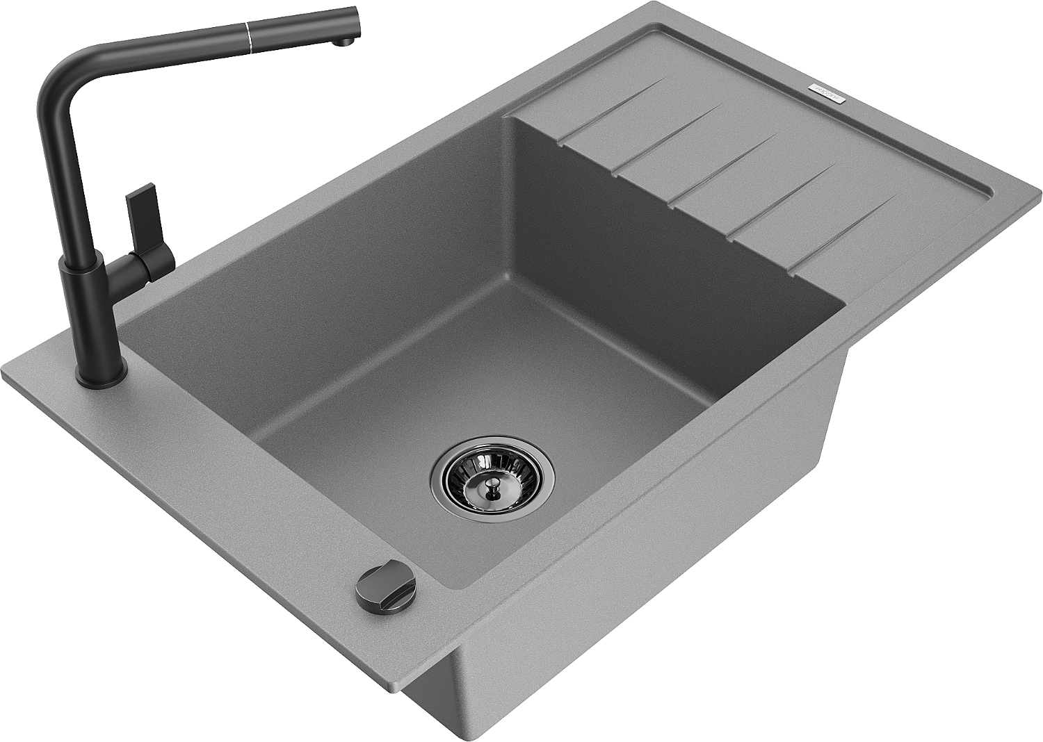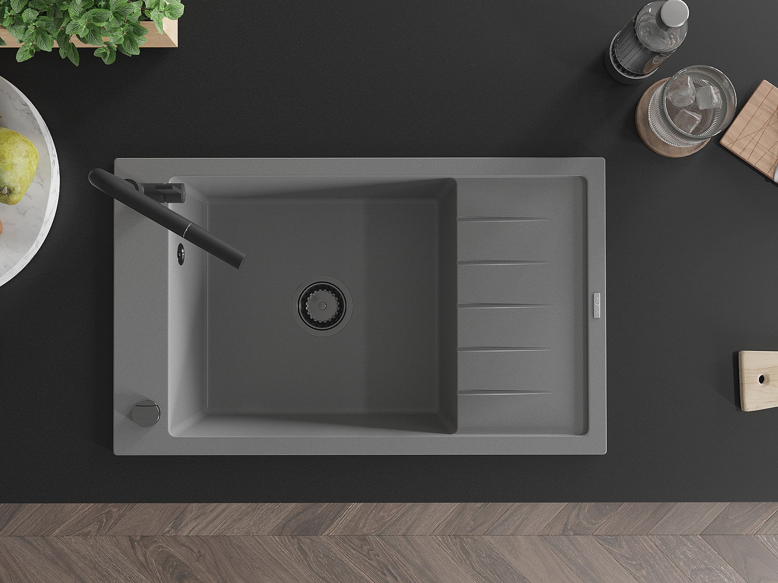 Mexen Elias žulový jednodrez s odkvapkávačom a kuchynskou batériou Flora, sivý - 6511-71-670401-70-B