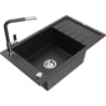 Mexen Elias žulový kuchynský drez s 1 vaničkou a odkvapkávačom a kuchynskou batériou Flora, čierny/strieborný metalik - 6511-73?