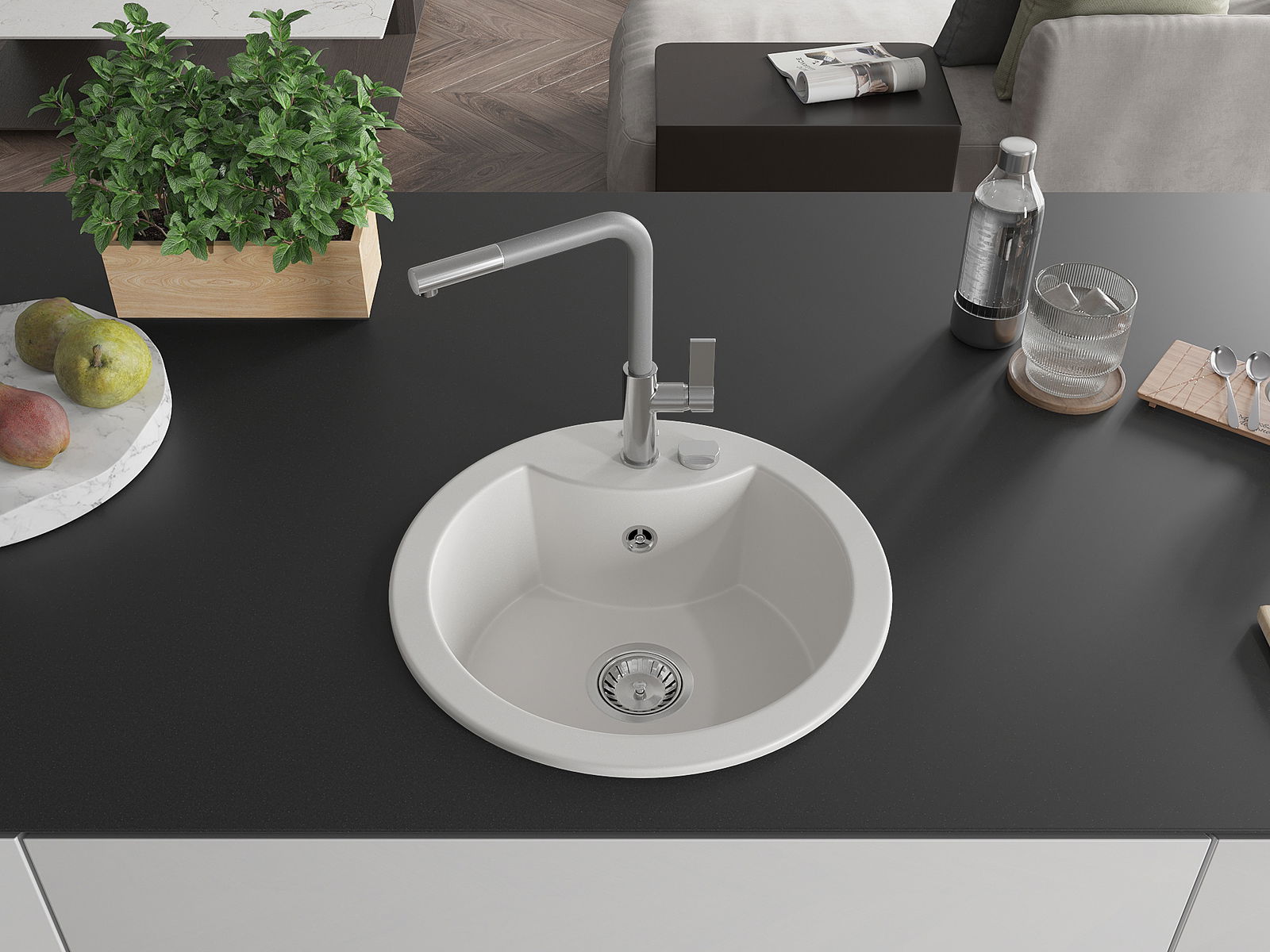 Povrch umývadla je odolný voči škvrnám a sfarbeniu, vďaka čomu sa ľahko čistí a zachováva si svoju farbu po dlhú dobu. Estetický a prakticky dopĺňajúci každú kuchyňu.