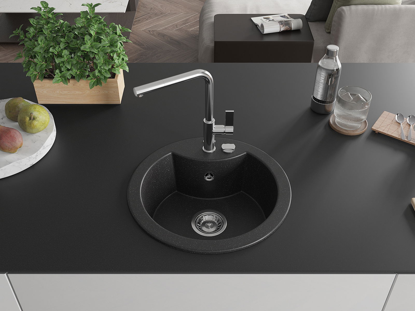 Povrch umývadla je odolný voči škvrnám a sfarbeniu, vďaka čomu sa ľahko čistí a zachováva si svoju farbu po dlhú dobu. Estetický a prakticky dopĺňajúci každú kuchyňu.