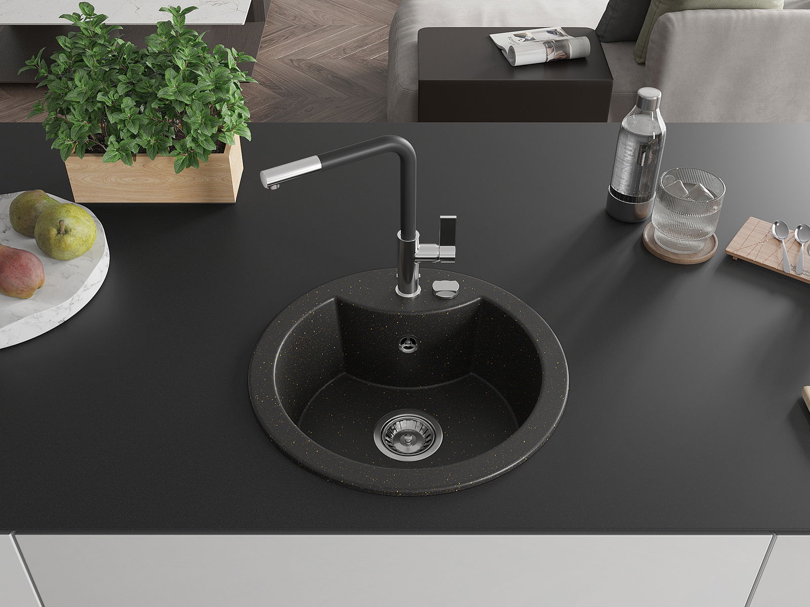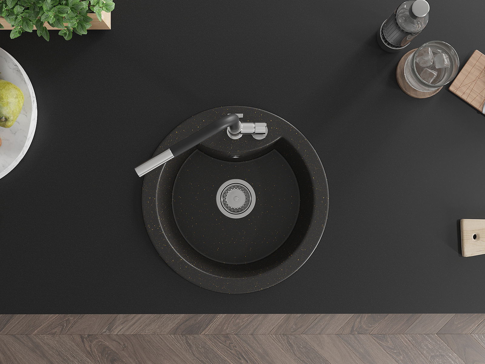Povrch umývadla je odolný voči škvrnám a sfarbeniu, vďaka čomu sa ľahko čistí a zachováva si svoju farbu po dlhú dobu. Estetický a prakticky dopĺňajúci každú kuchyňu.