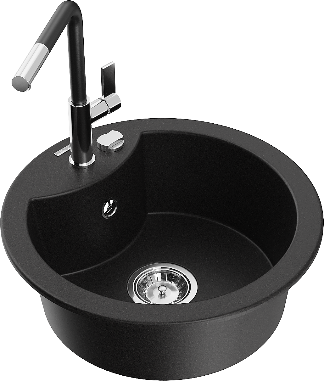 Mexen Diego žulový drezy 1-komorový s kuchynskou batériou Flora, čierny - 6512-77-670401-07