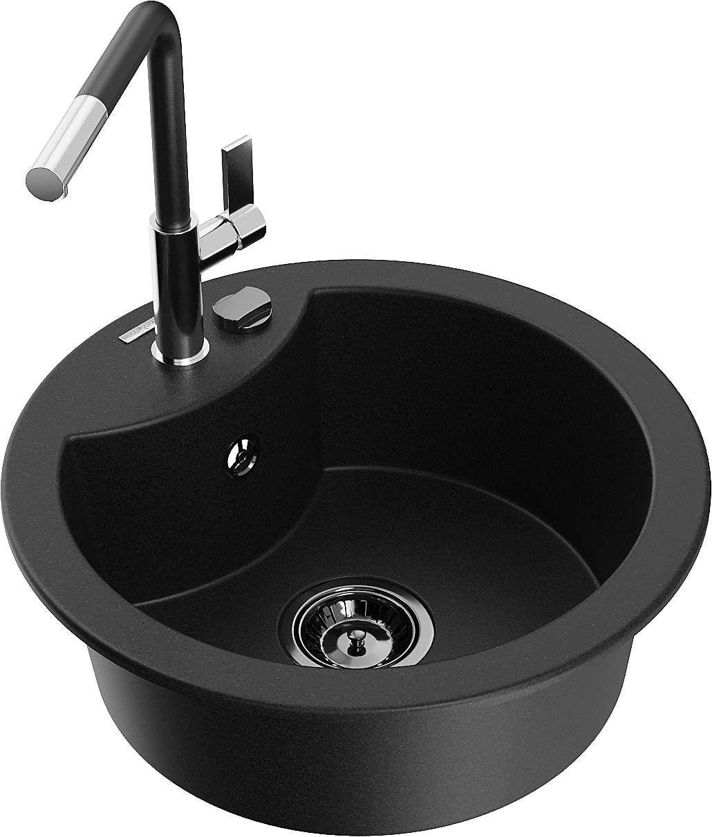 Mexen Diego žulový drez 1-komorový s kuchynskou batériou Flora, čierny - 6512-77-670401-07-B
