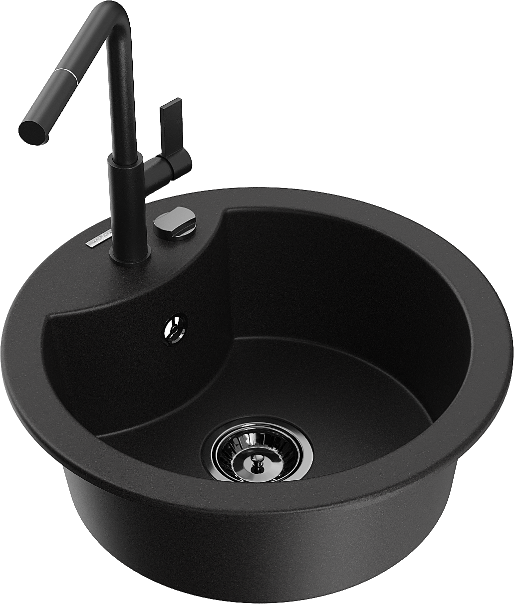 Mexen Diego kuchynský drez granitový 1-komorový s kuchynskou batériou Flora, čierny - 6512-77-670401-70-B