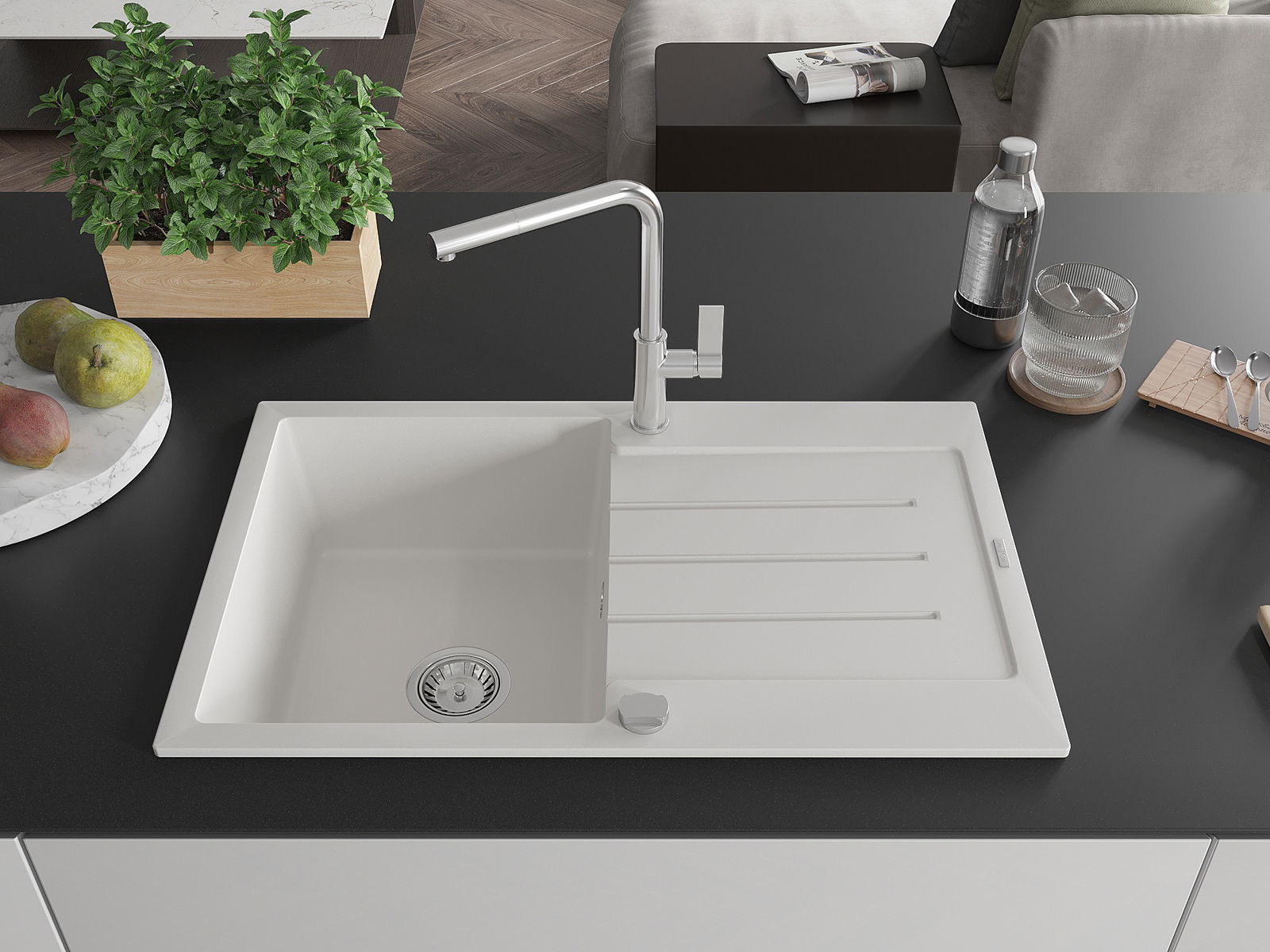 Povrch umývadla je odolný voči škvrnám a sfarbeniu, vďaka čomu sa ľahko čistí a zachováva si svoju farbu po dlhú dobu. Estetický a prakticky dopĺňajúci každú kuchyňu.