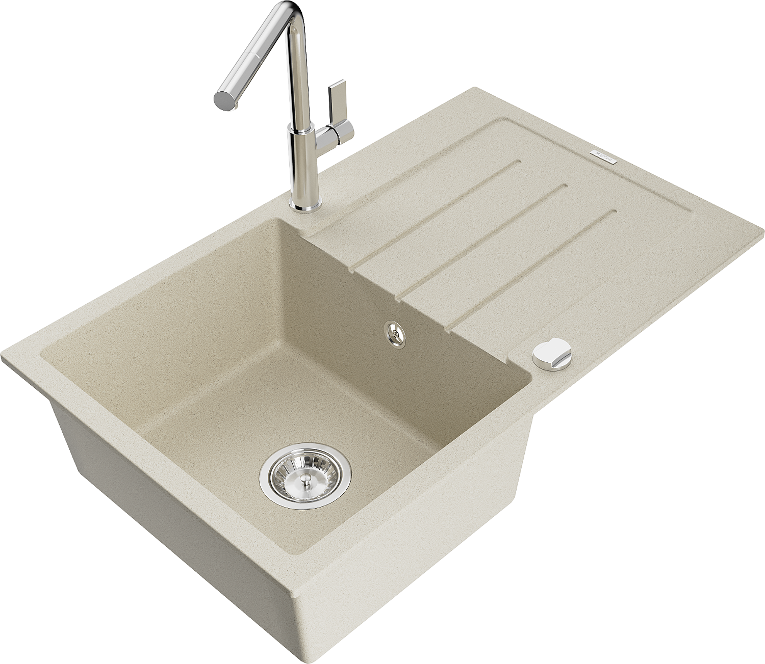 Mexen Bruno žulový kuchynský drez s jednou komorou, s odkvapkávačom a kuchynskou batériou Flora, béžový - 6513-69-670401-00