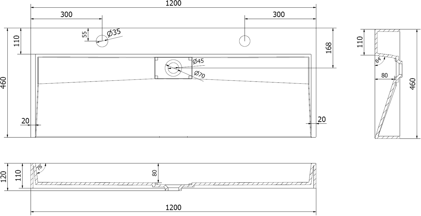 Mexen Ava dosková umývadlo z konglomerátu 2/O 120 x 46 cm, čierna - 23011272